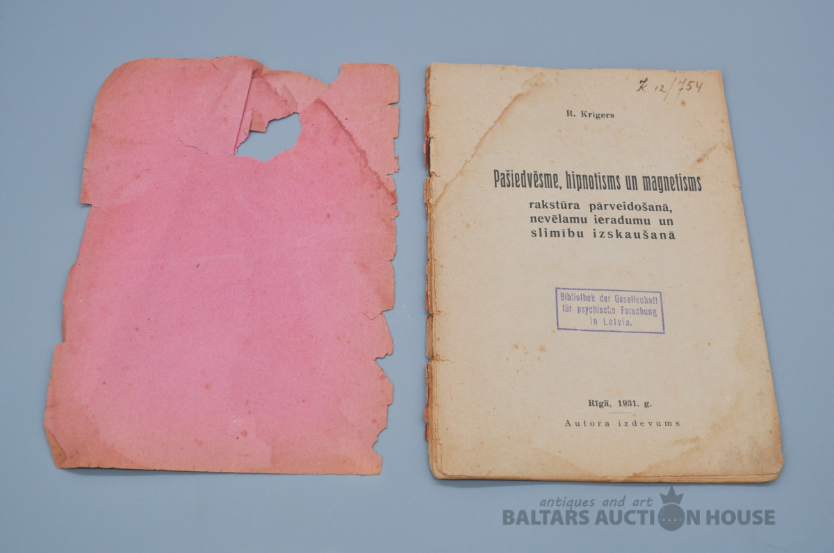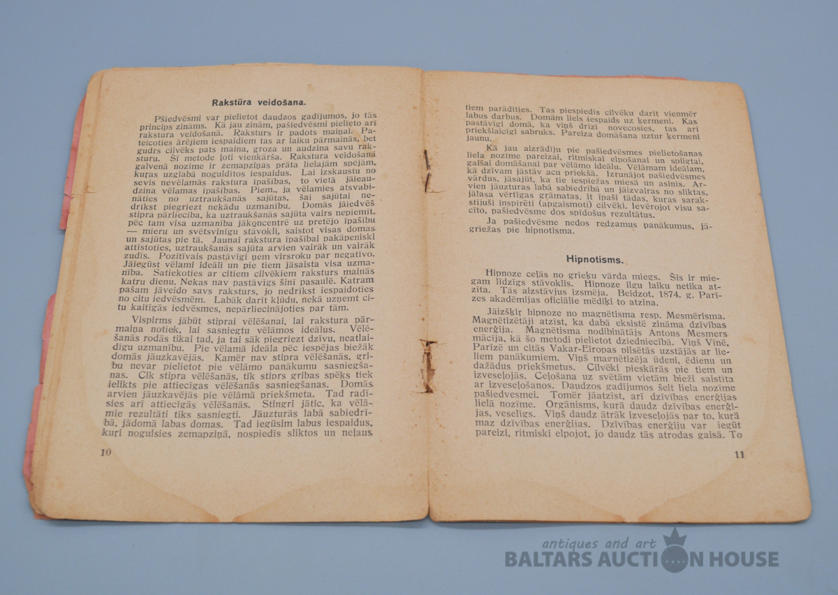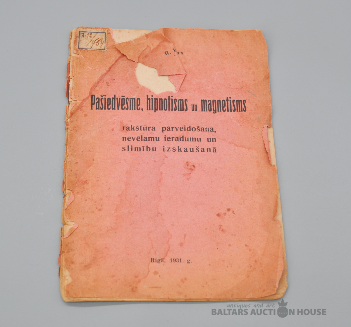 Pašiedvēsme, Hipnotisms un Magnetisms. Rīga 1931. 20 lpp. Nepieciešama restaurācija.