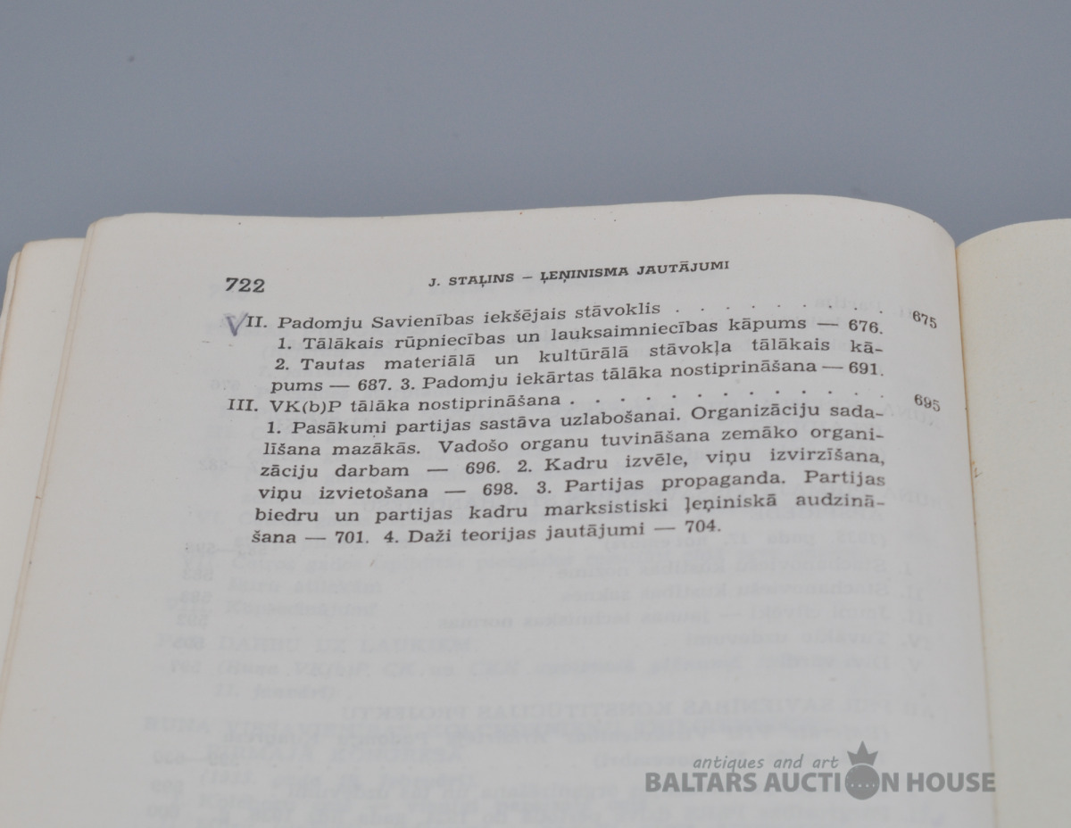 Josifs Staļins "Ļeņinisma jautājumi" Rīga 1945. 722 lpp.