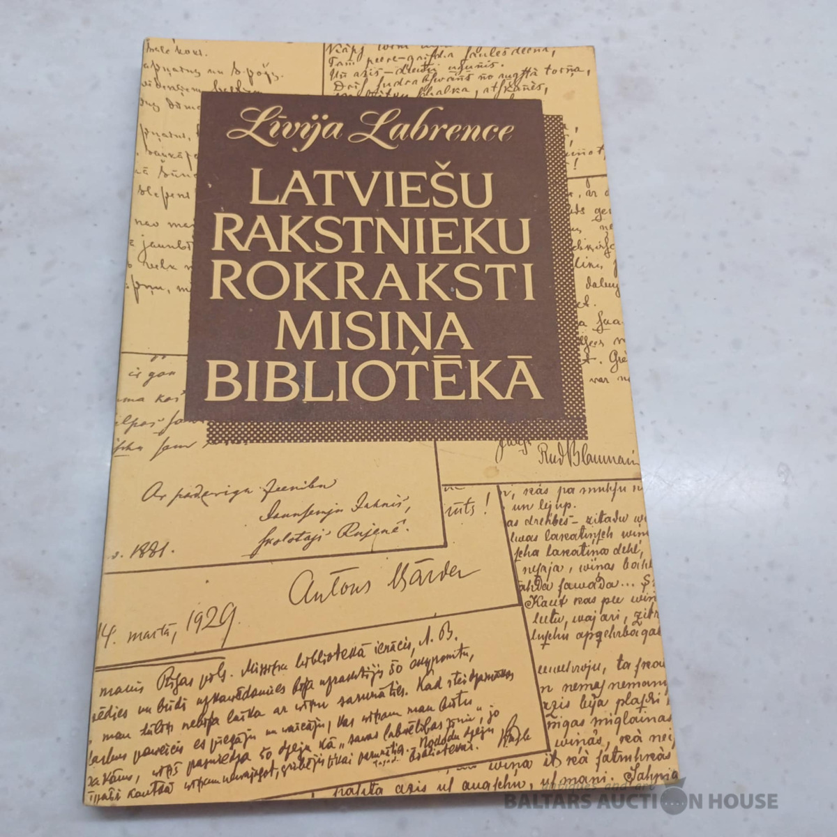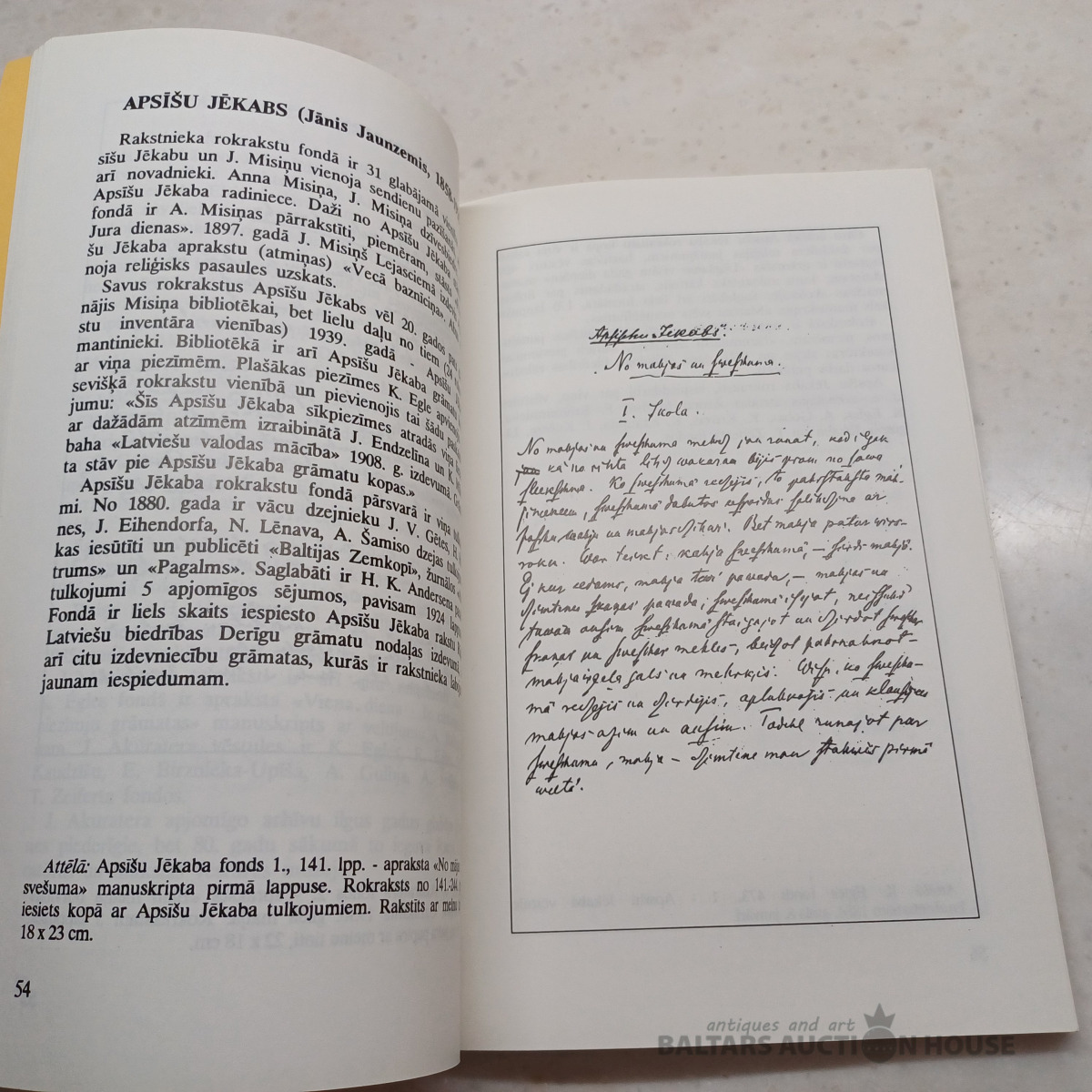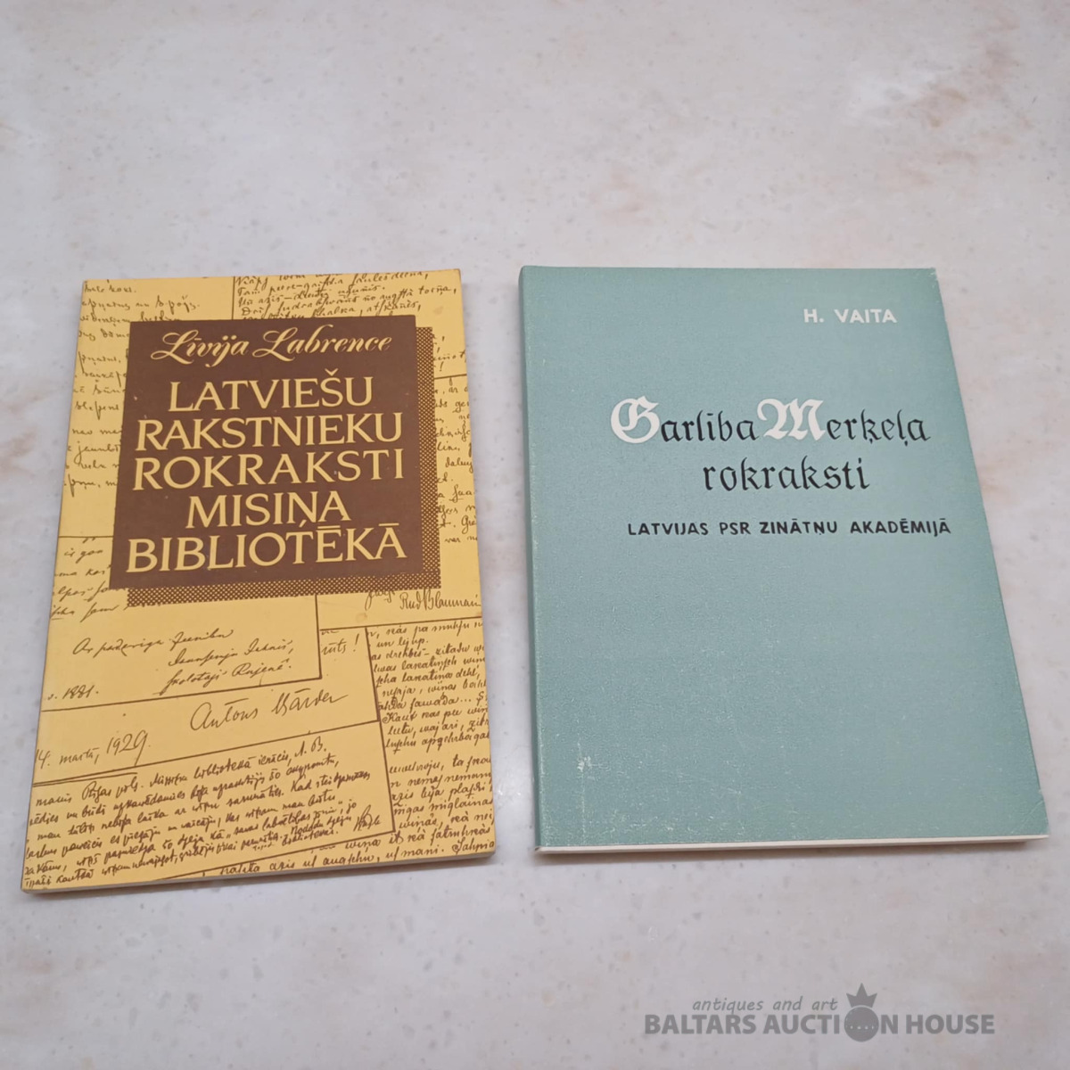 2 grāmatas – latviešu rakstnieku rokrakstu paraugi (personu rādītājs bildēs) + Merķeļa rokrakstu katalogs.