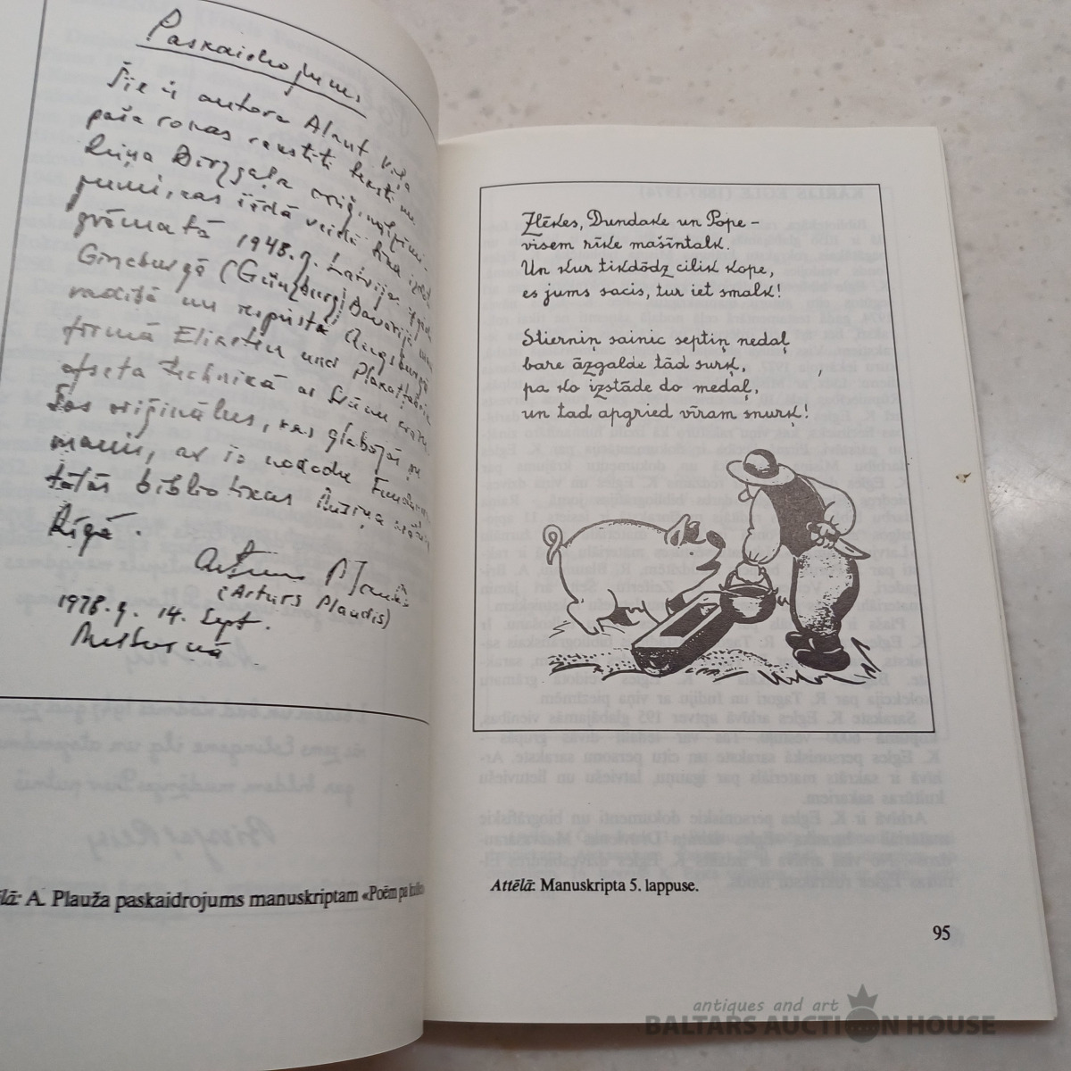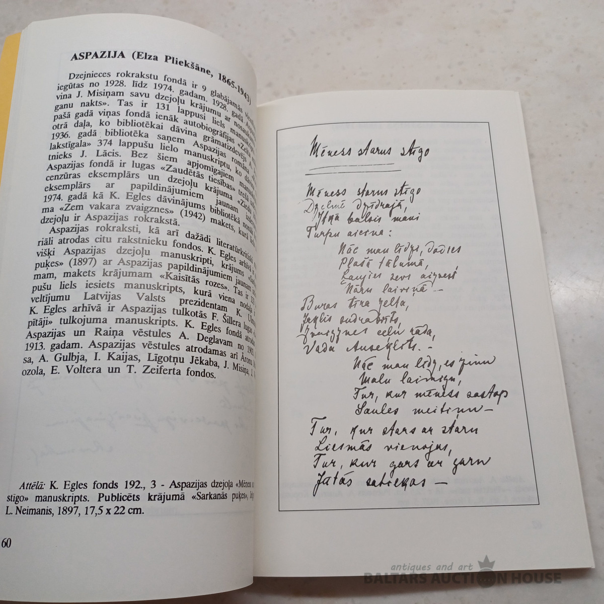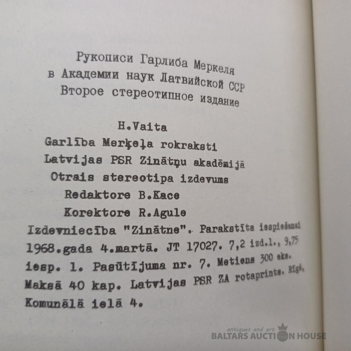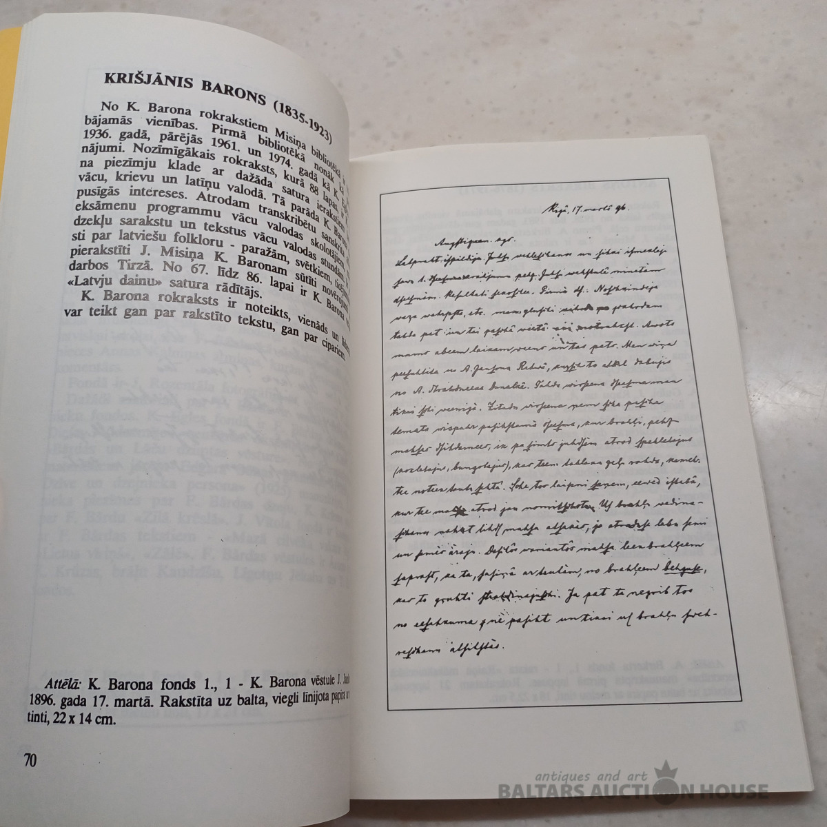 2 grāmatas – latviešu rakstnieku rokrakstu paraugi (personu rādītājs bildēs) + Merķeļa rokrakstu katalogs.