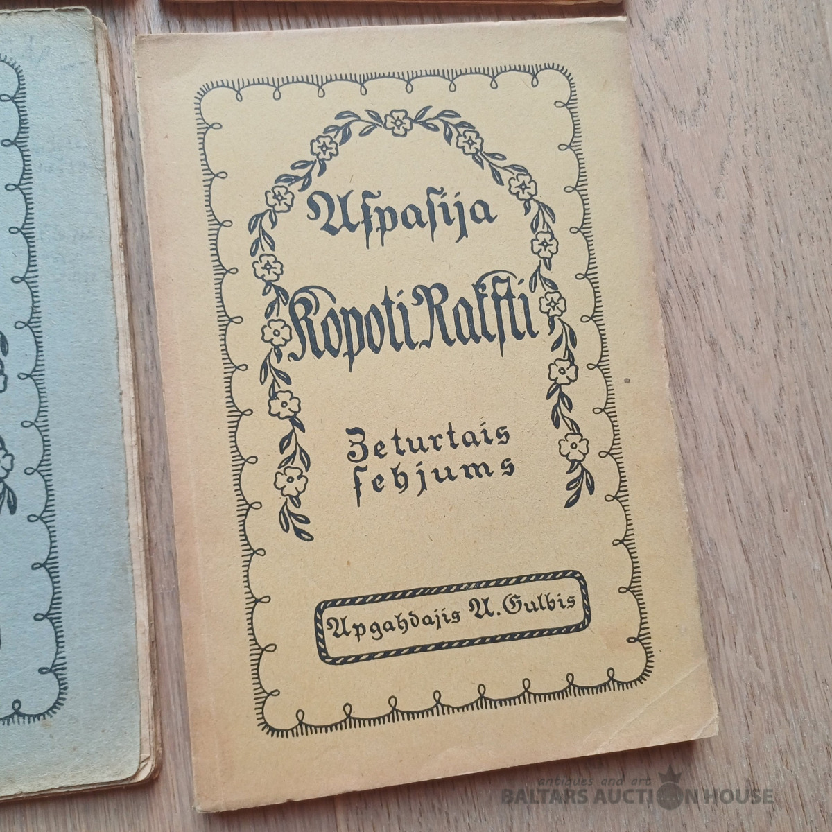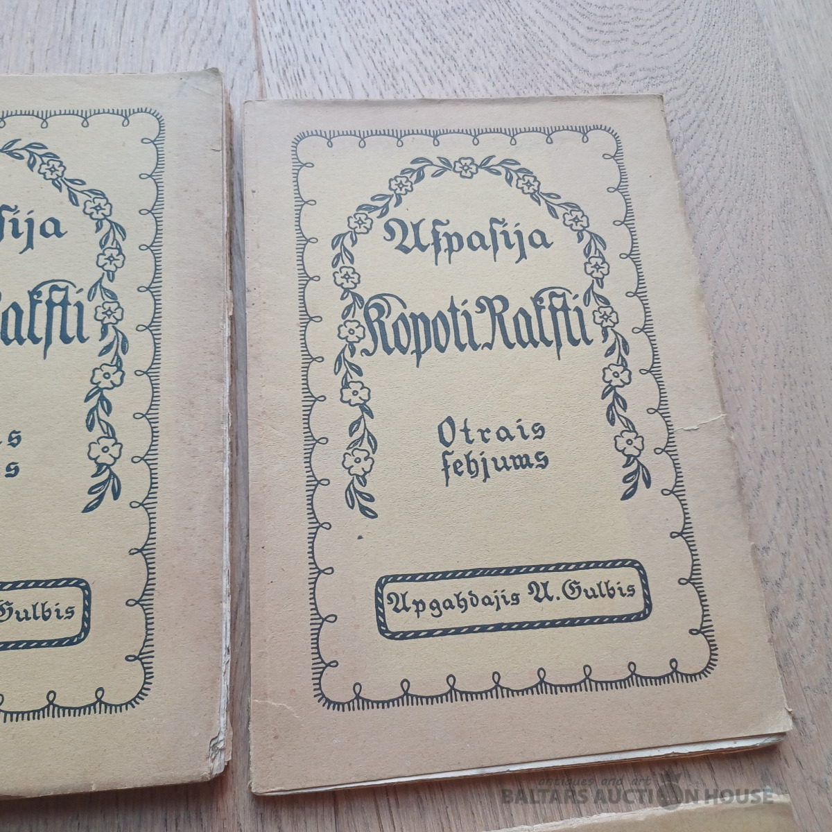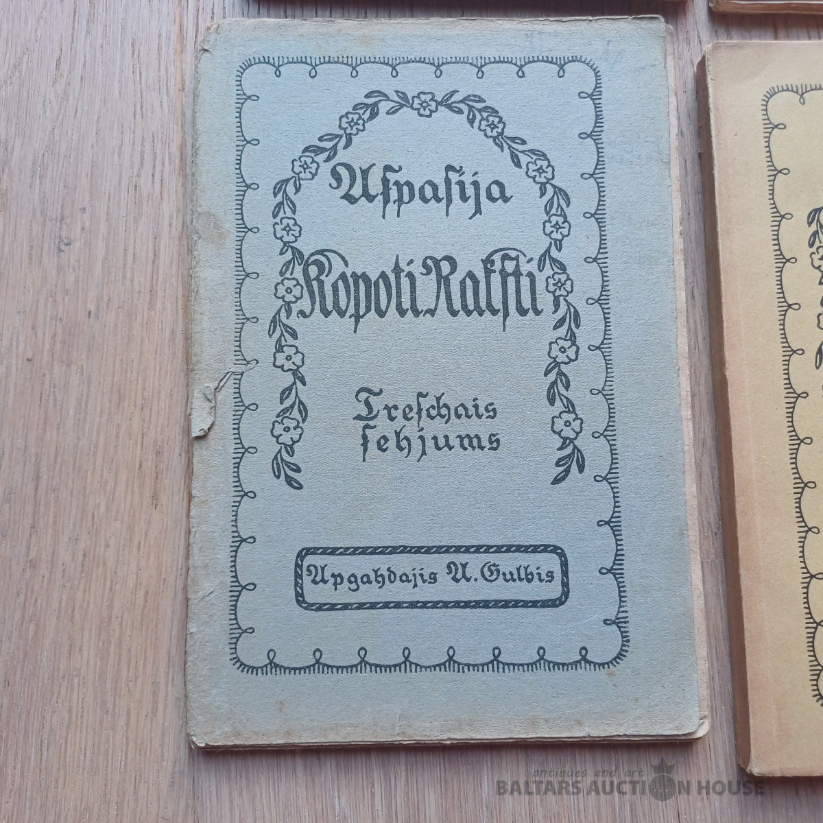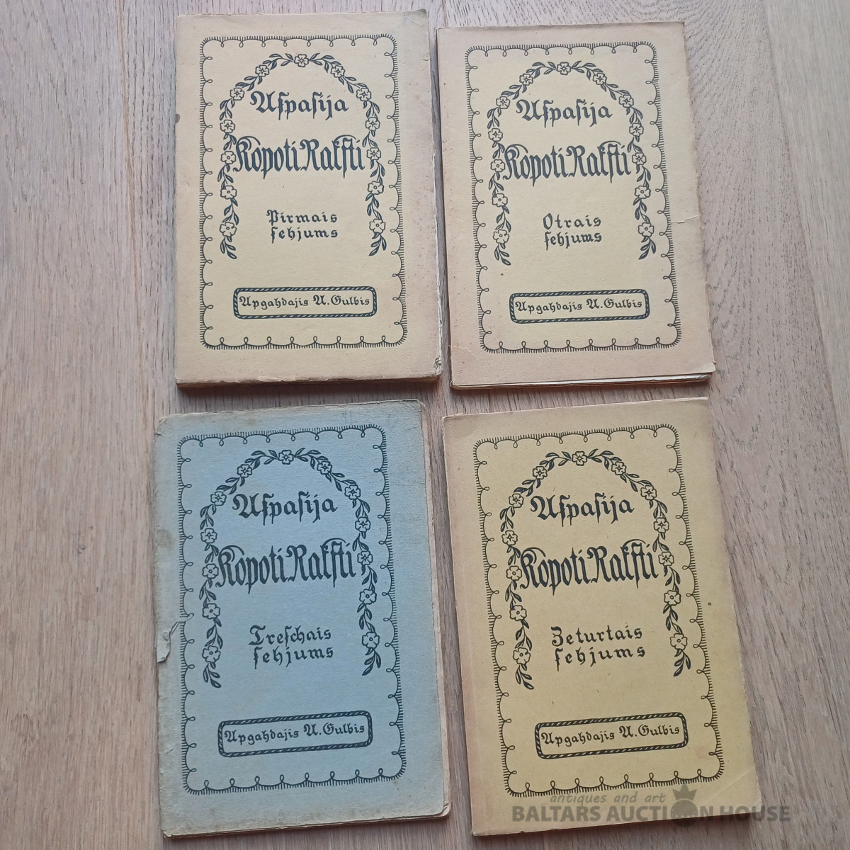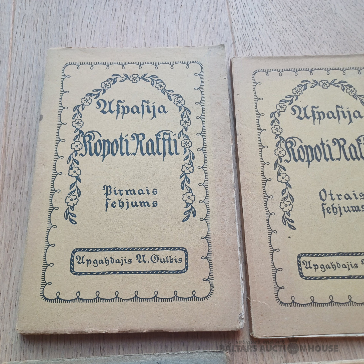 Aspazijas kopoti raksti 1‐4, 1920to gadu sākums. Jaunsudrabiņa zīmēti vāki.