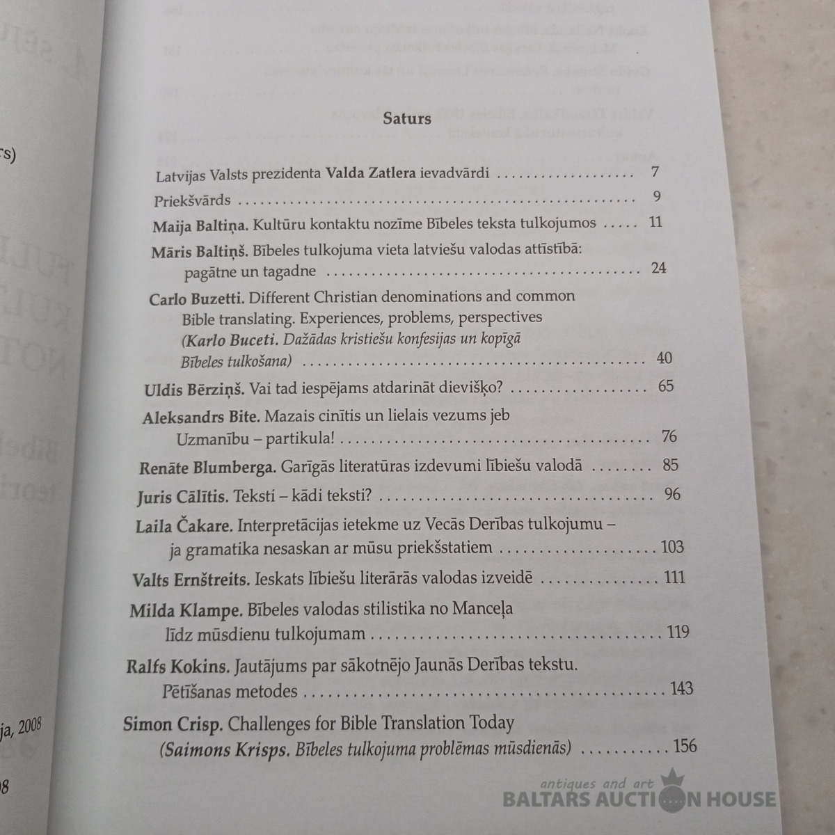 Bībeles tulkojums – kulturvēsturisks notikums. Teorija, vēsture, mūsdienu prakse. (satura rādītājs bildēs)