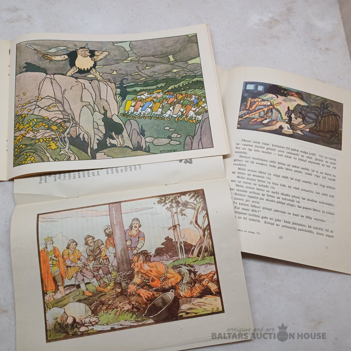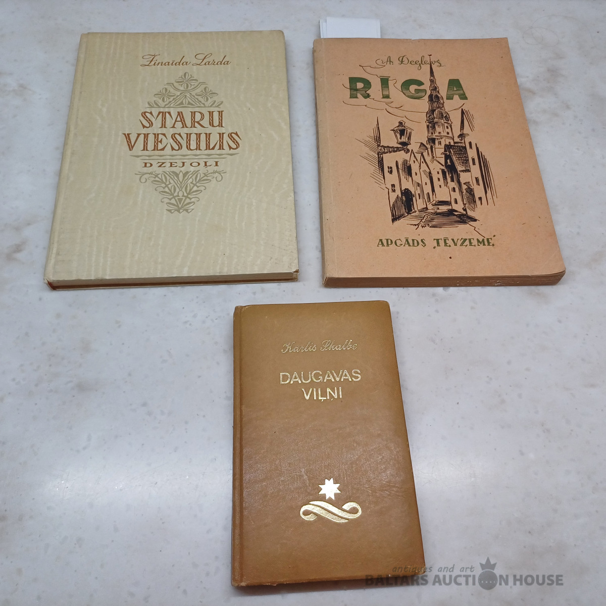 3 grāmatas. Deglava Rīga ar daudzām Pīlādža zīmētām ilustrācijām. Skatīt bildēs. Skalbes grāmata ādas sējumā.