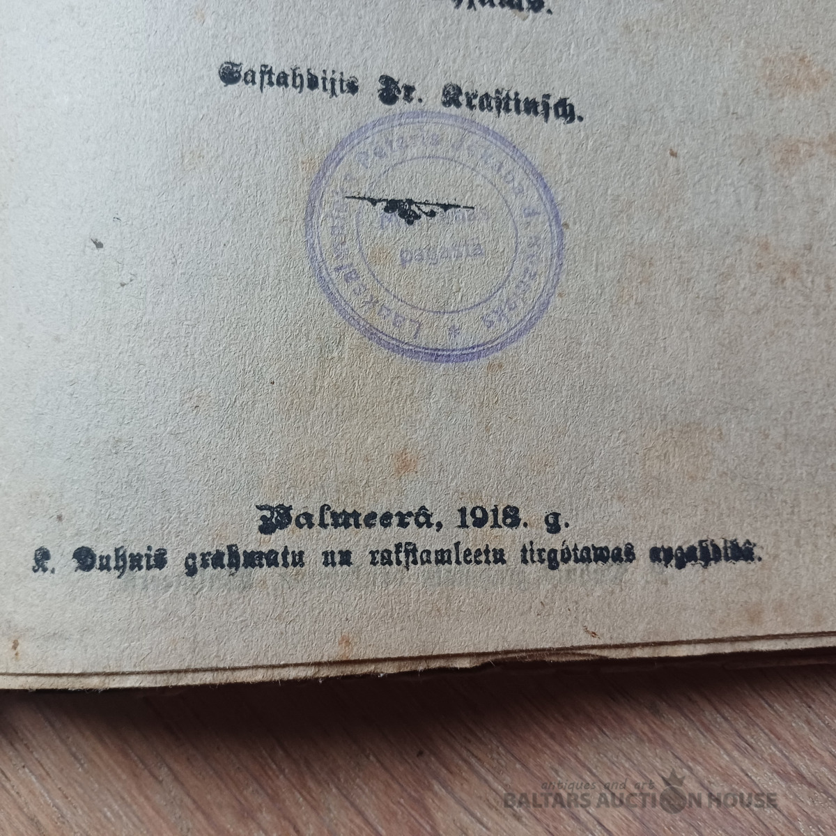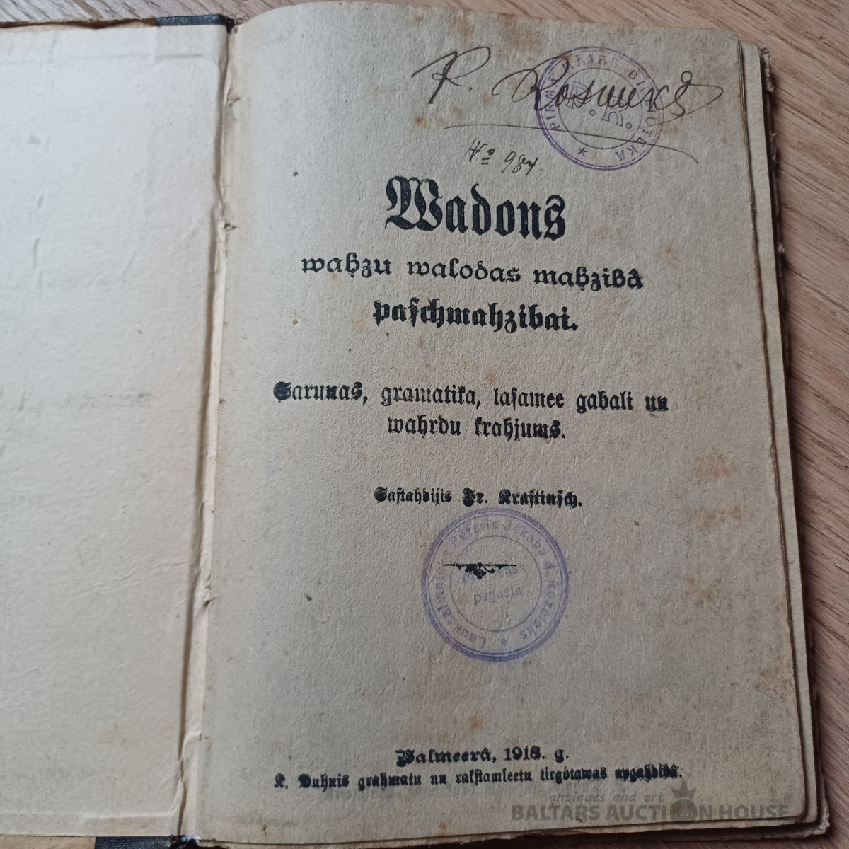 Vadonis vācu valodas mācībā pašmācībai, 1918. g. Izdevis Dūnis Valmierā. Rets kara gadu izdevums. / Ar zīmogu un parakstu – Lauksaimnieks Pēteris Roznieks