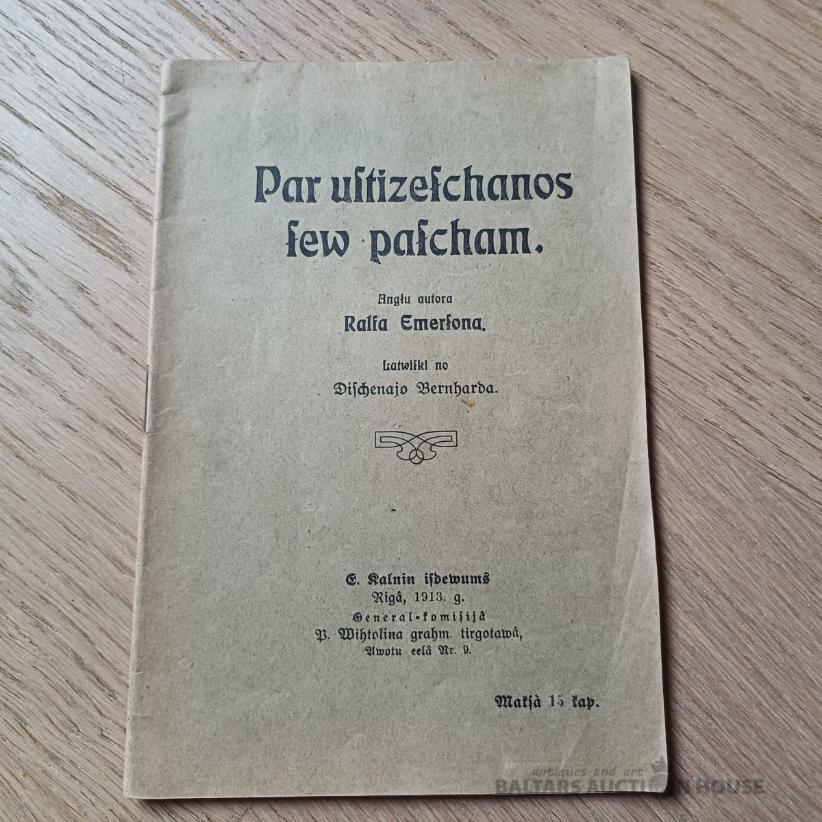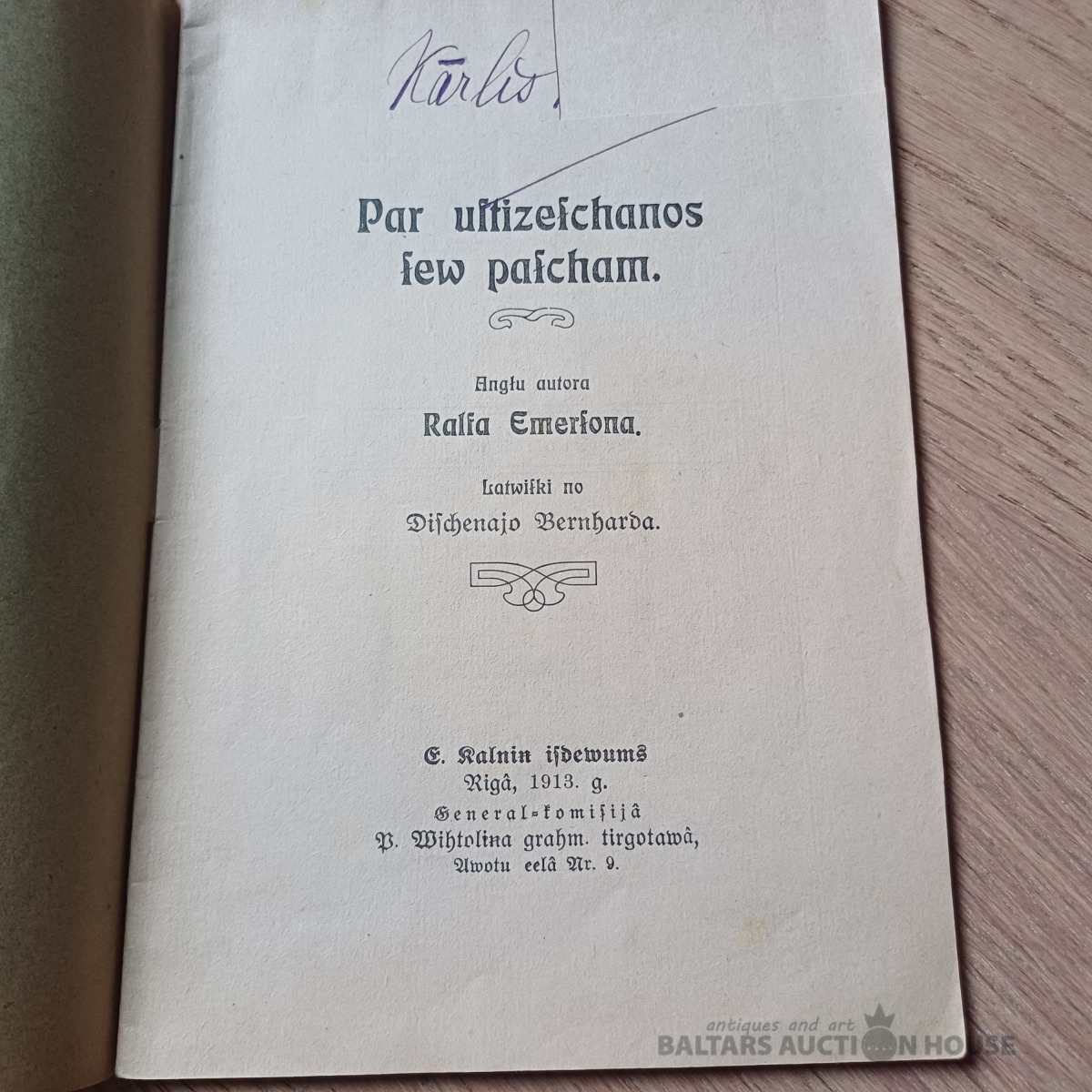 Par uzticēšanos sev pašam, 1913. g. pēdējais pirmskara gads/ E. Kalniņa izdevums Rīgā P. Vītoliņa grāmatu tirgotavā