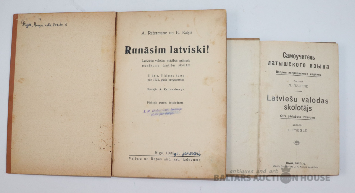 Grāmatas 2 gab. RUNĀSIM LATVISKI!, 1935. g. LATVIEŠU VALODAS SKOLOTĀJS, 1925. g.