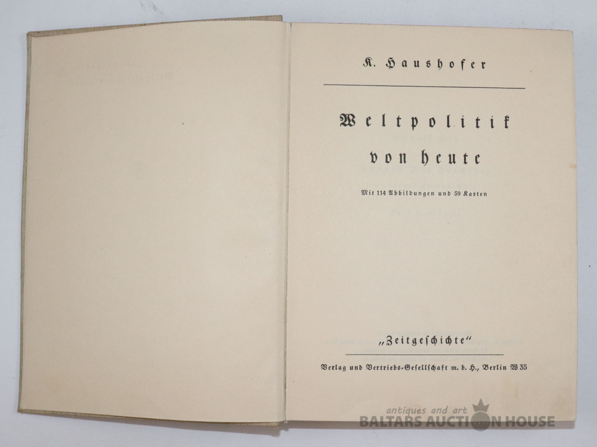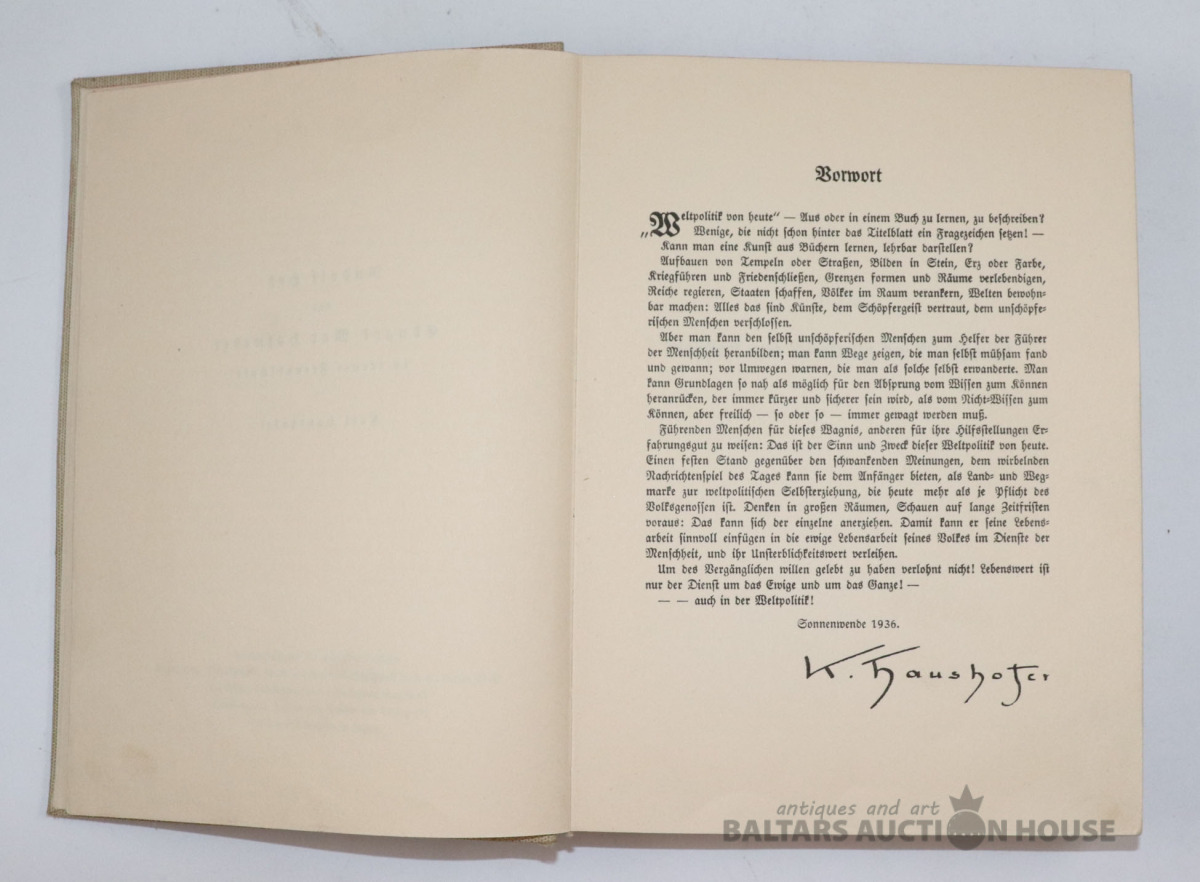 Karl Haushofer WELTPOLITIK VON HEUTE, 1936.