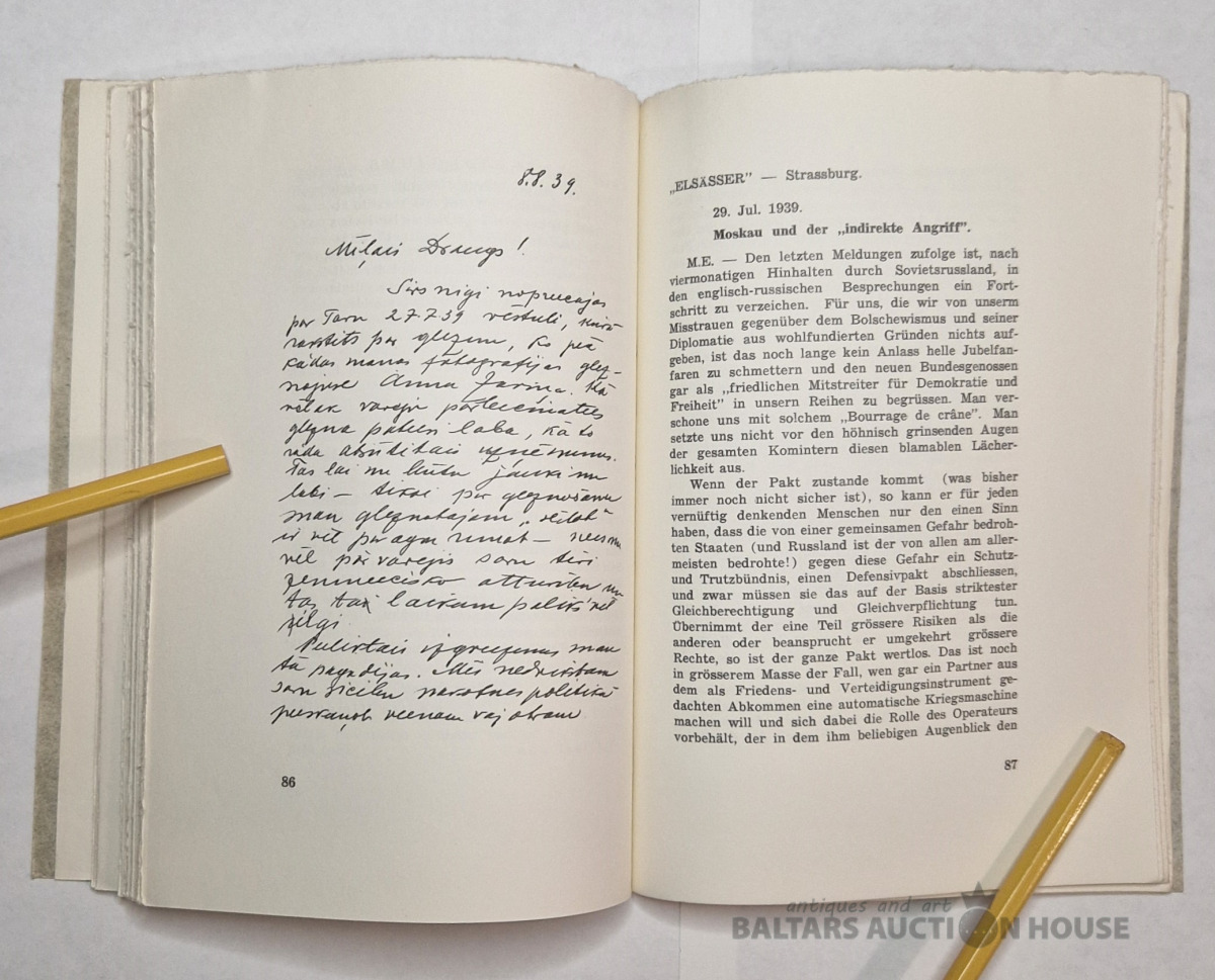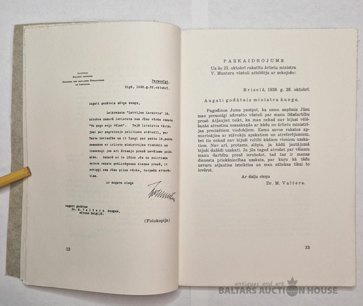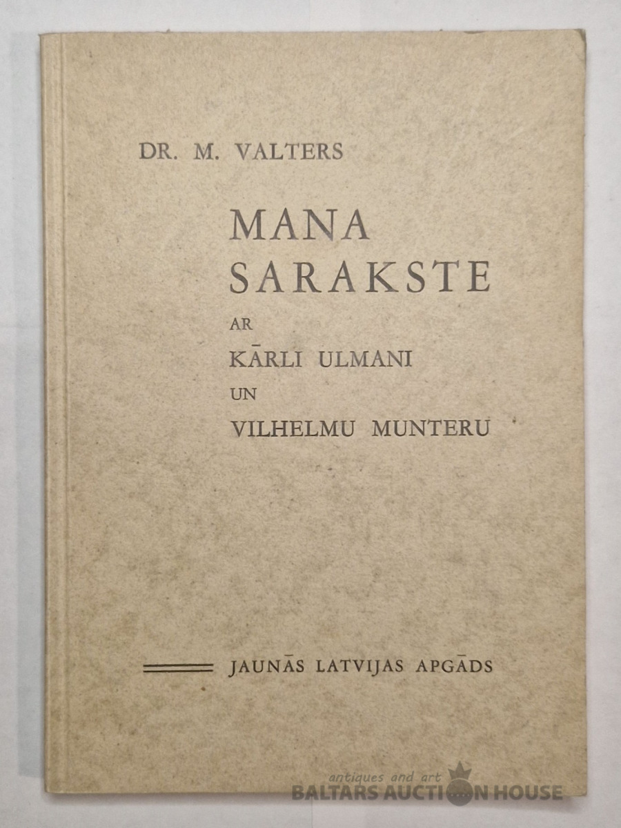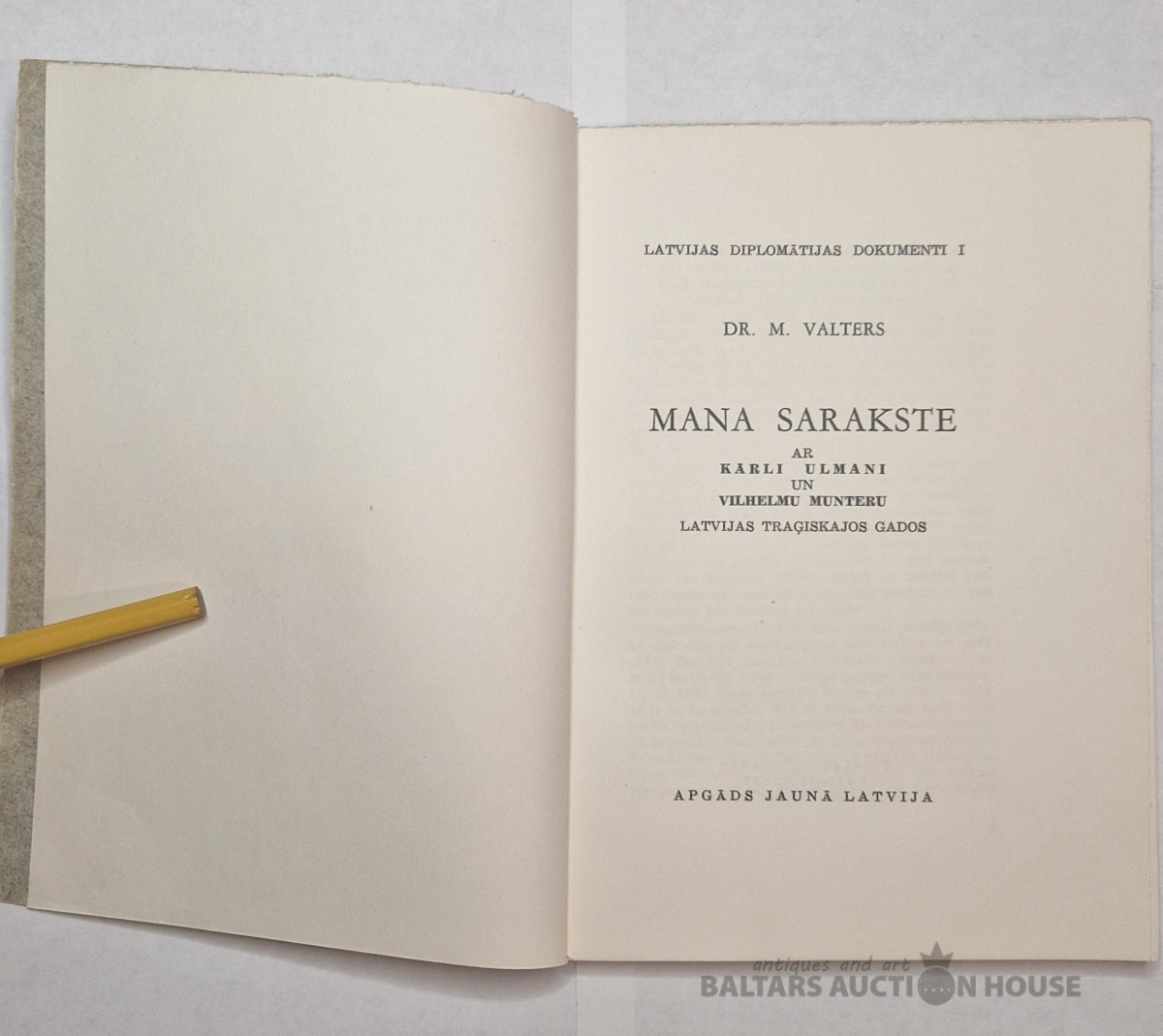 Nr.1778. Mana sarakste ar Kārli Ulmani un Vilhelmu Munteru Latvijas traģiskajos gados. Latvijas diplomātijas dokumenti. Dr. M. Valters. Apgāds Jaunā Latvija, 1957.