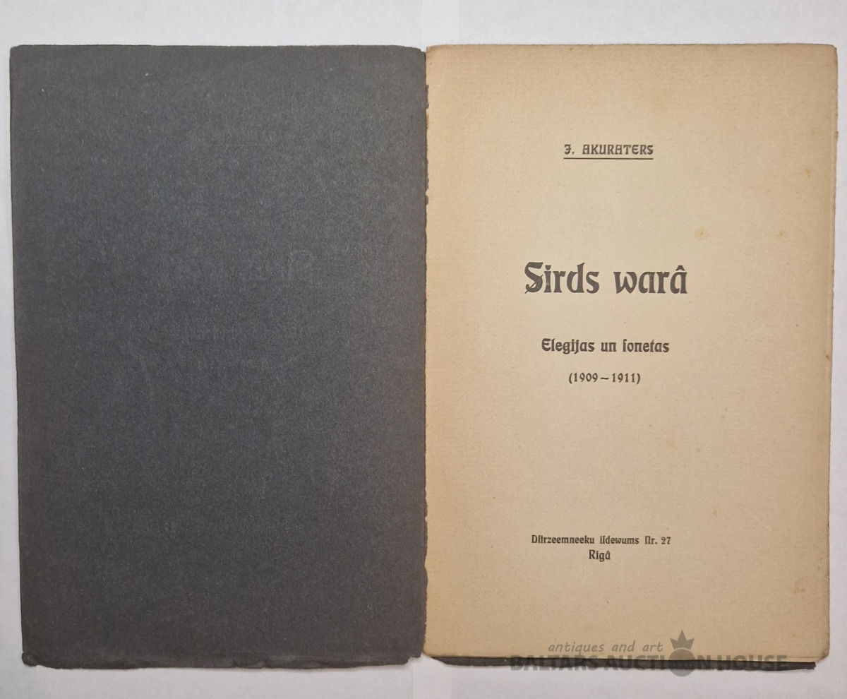 Nr.1777. Sirds varā. Elēģijas un sonetas 1909-1911. J. Akuraters. Rīga, Dzirciemnieku izdevums, 1911. gads