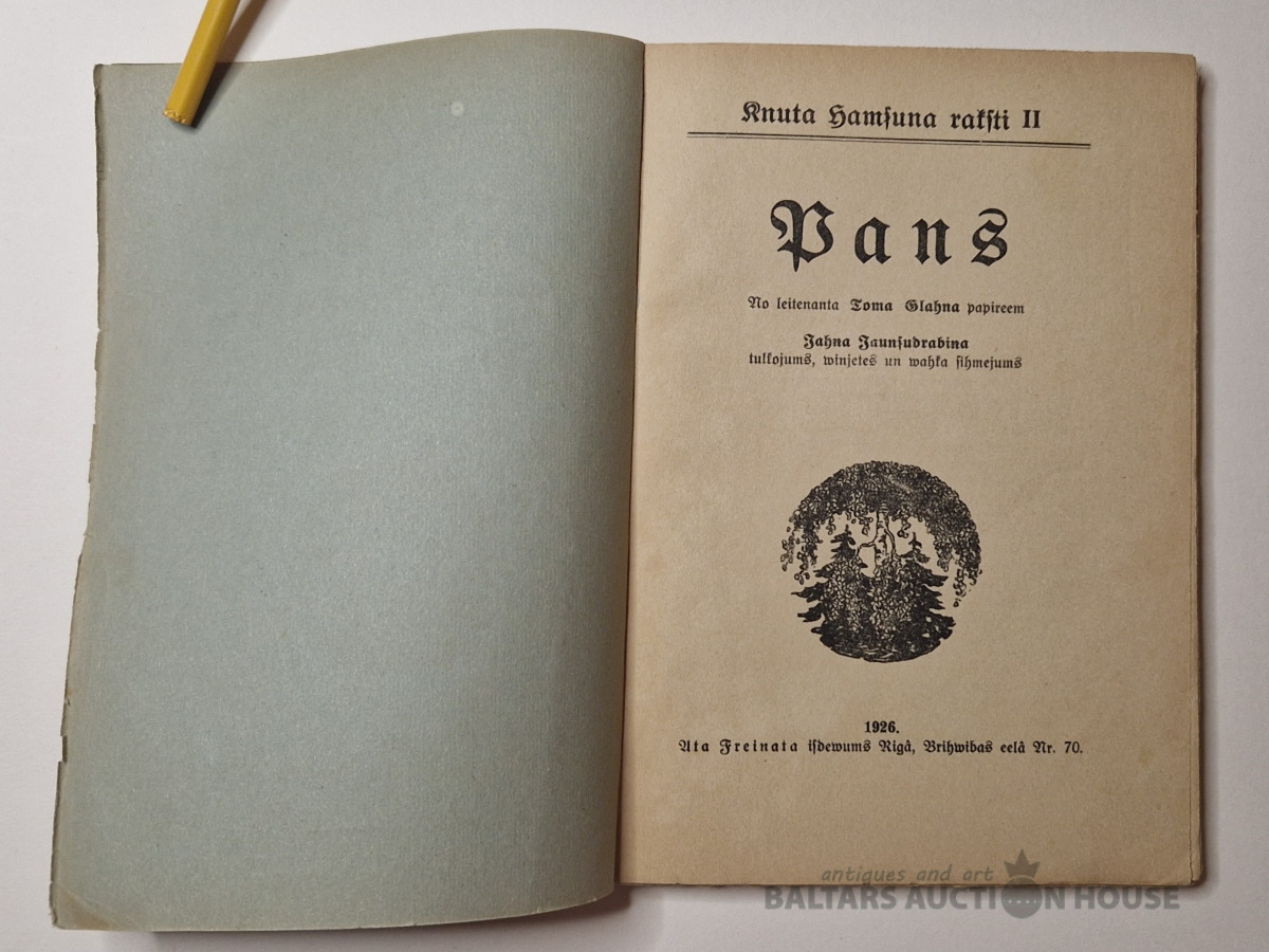 Nr.1781. Pans. Knuta Hamsuna raksti II. Tulkojis un vāku zīmējis: J. Jaunsudrabiņš. Ata Freinata izdevums, Rīgā, 1926. gads