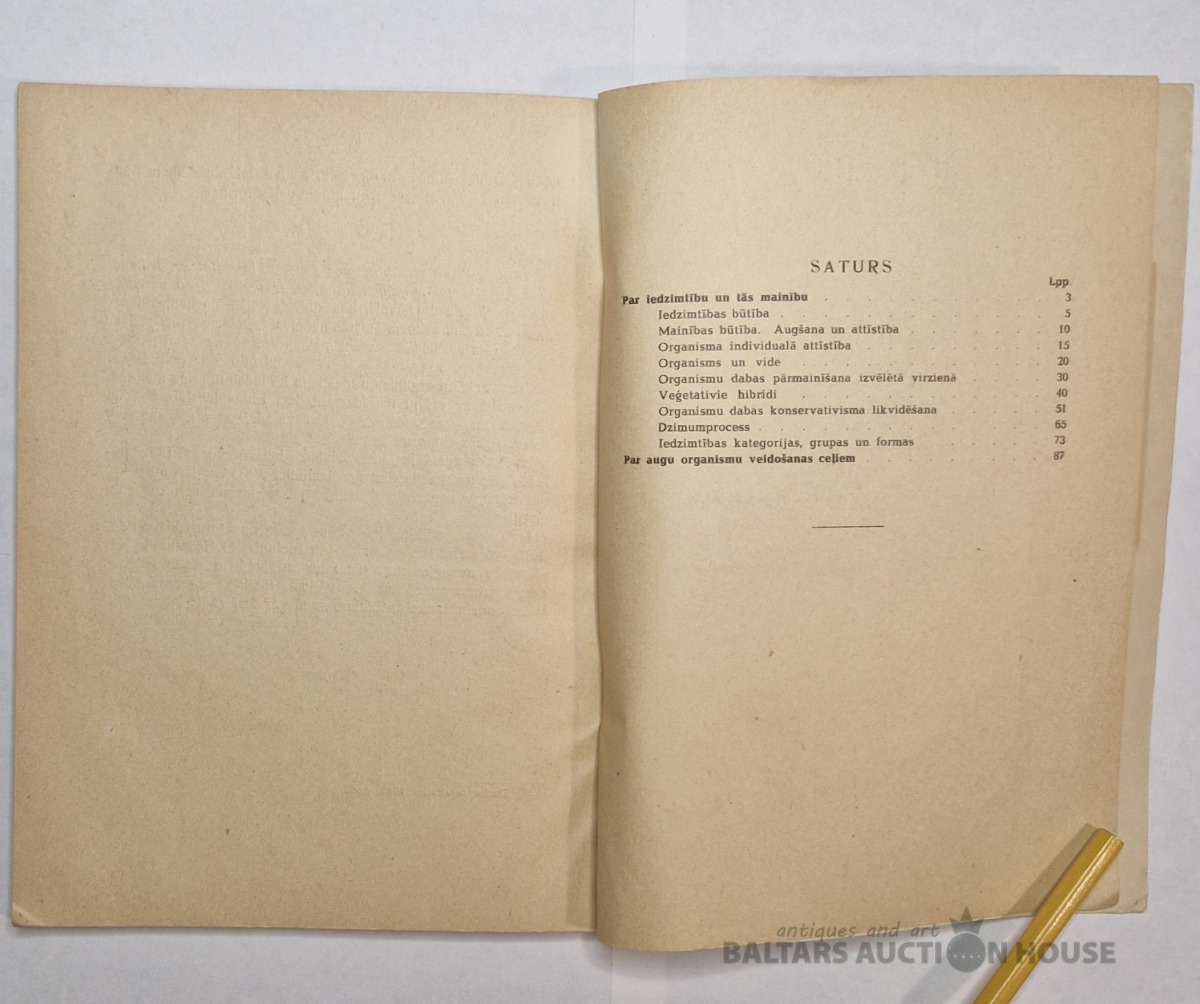 Nr.1779. Par iedzimtību un tās mainību un augu organismu veidošanas ceļiem. Rīga, Latvijas valsts izdevniecība, 1948. gads