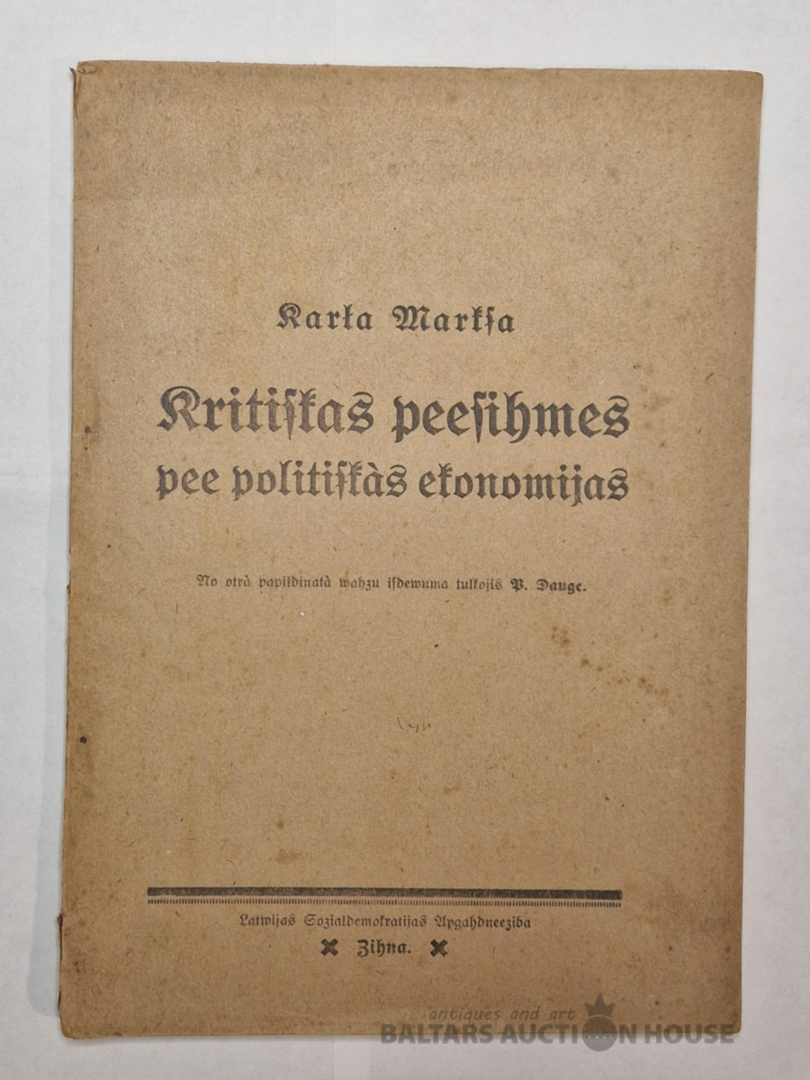 Nr.1806. Kritiskas piezīmes pie politiskās ekonomijas. Rīga, Cīņa, 1919. gads
