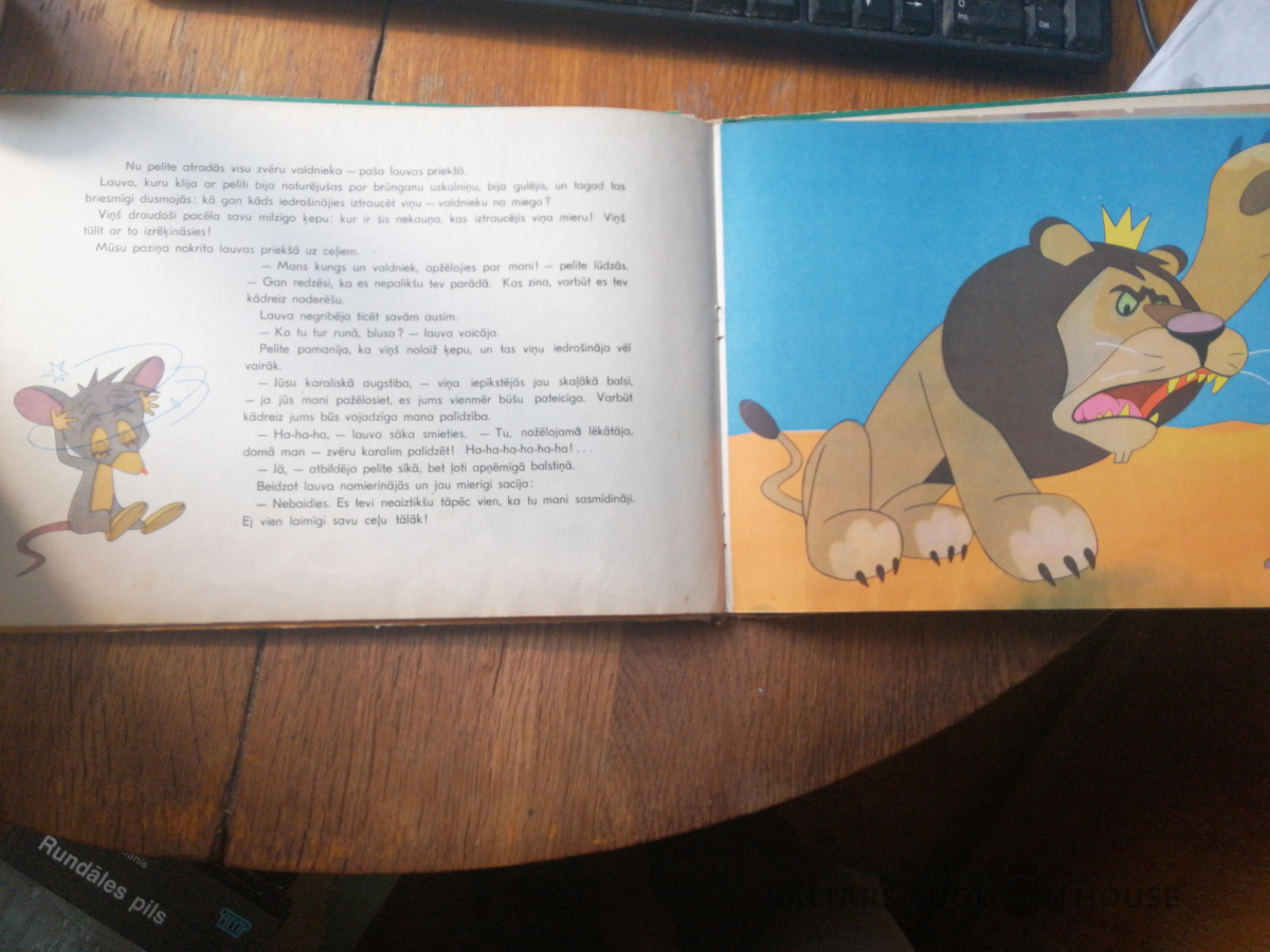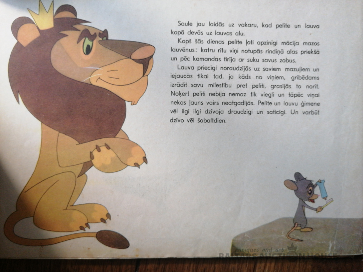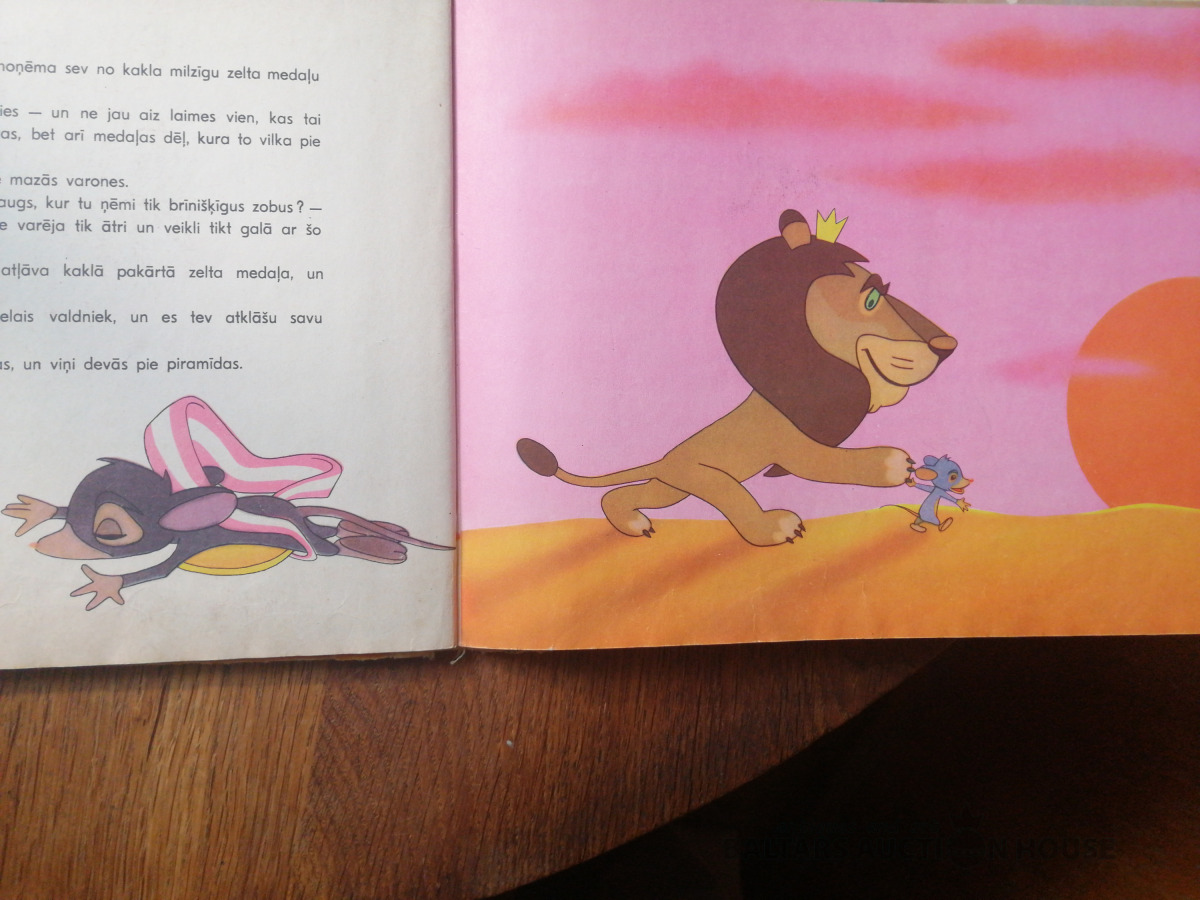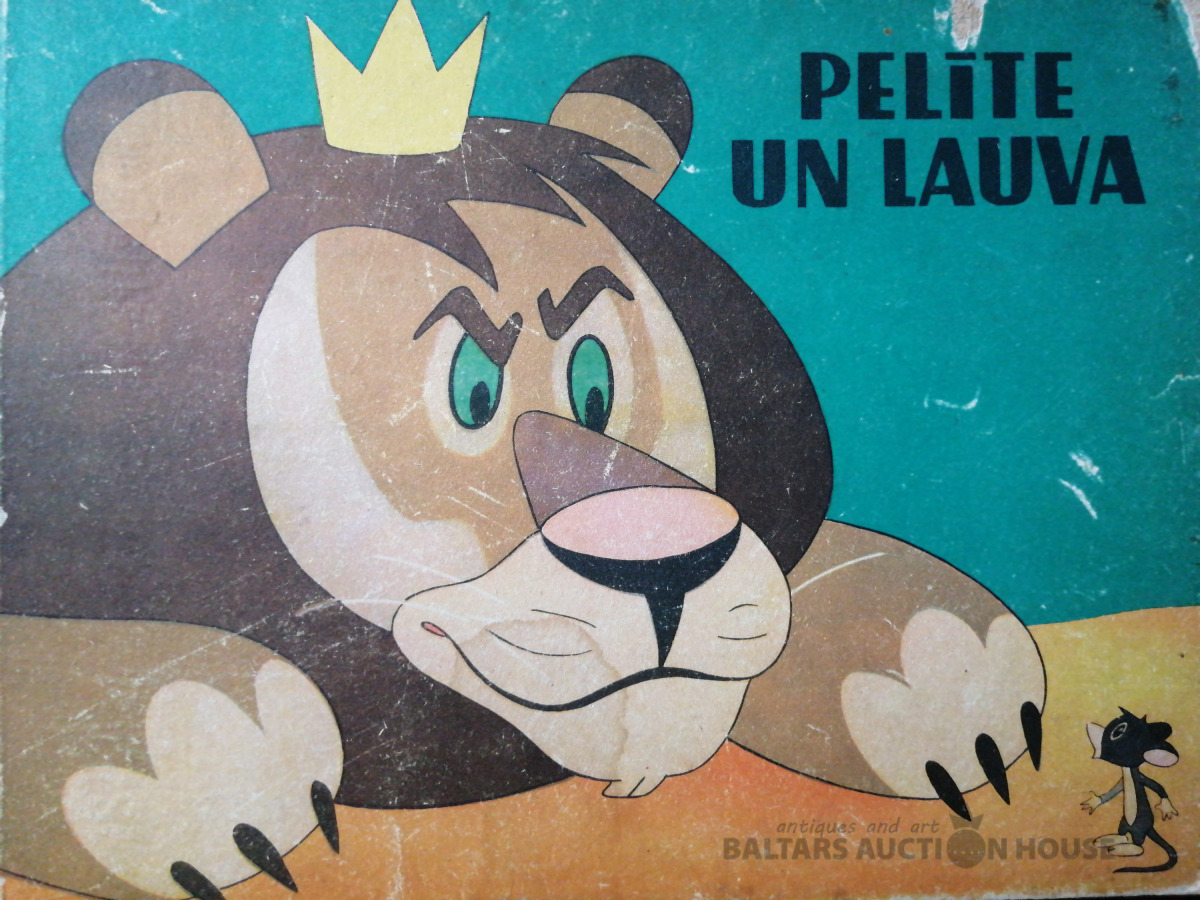 ‘Pelīte un lauva”, LVI, 1964., lielām krāsainam bildēm ilustrēta grāmata pirmsskolas vecuma bērniem