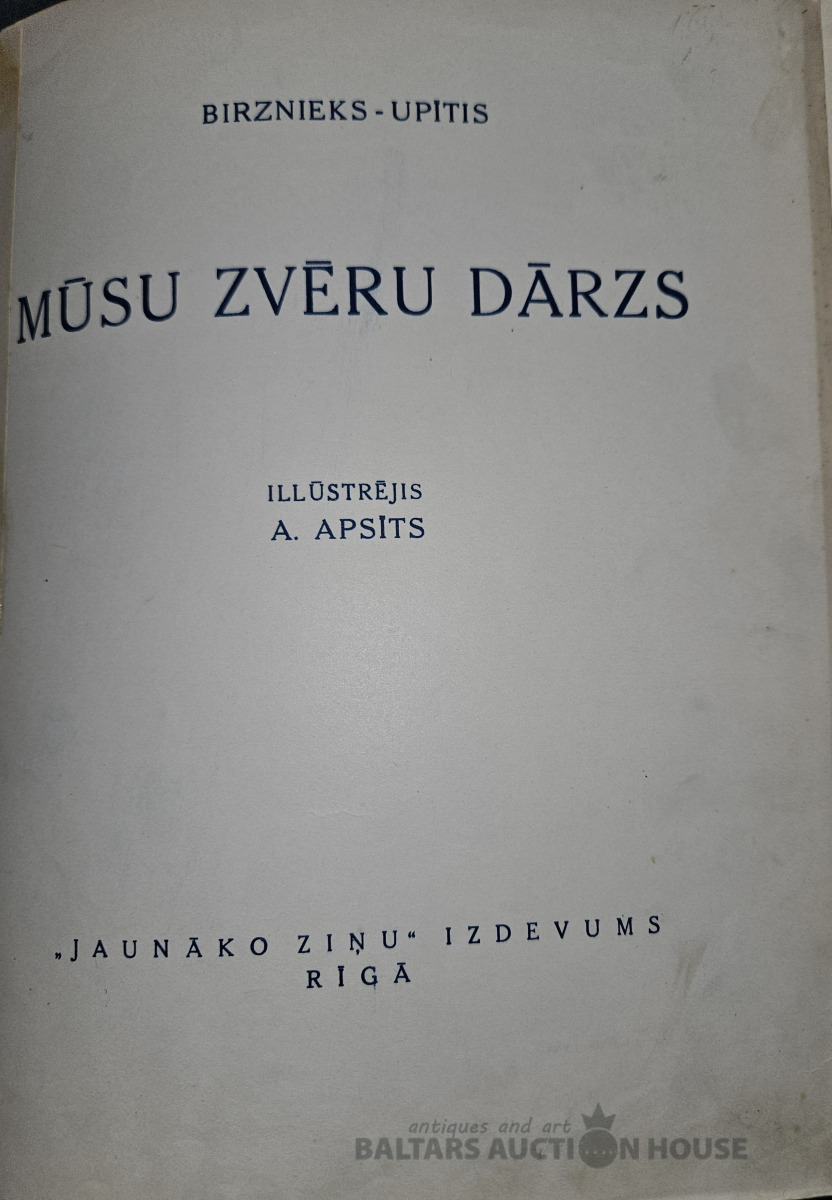 Ernests Birznieks - Upītis " Mūsu zvēru dārzs" .Ilustrējis Aleksandrs Apsītis ."Jaunāko ziņu " izdevums.