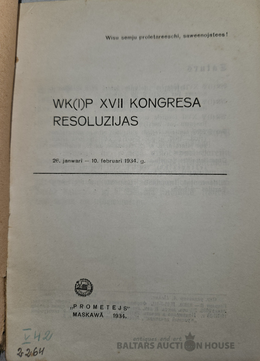 WK(I)P XVII kongresa resoluzijas .1934 g."Prometejs "izdevums.