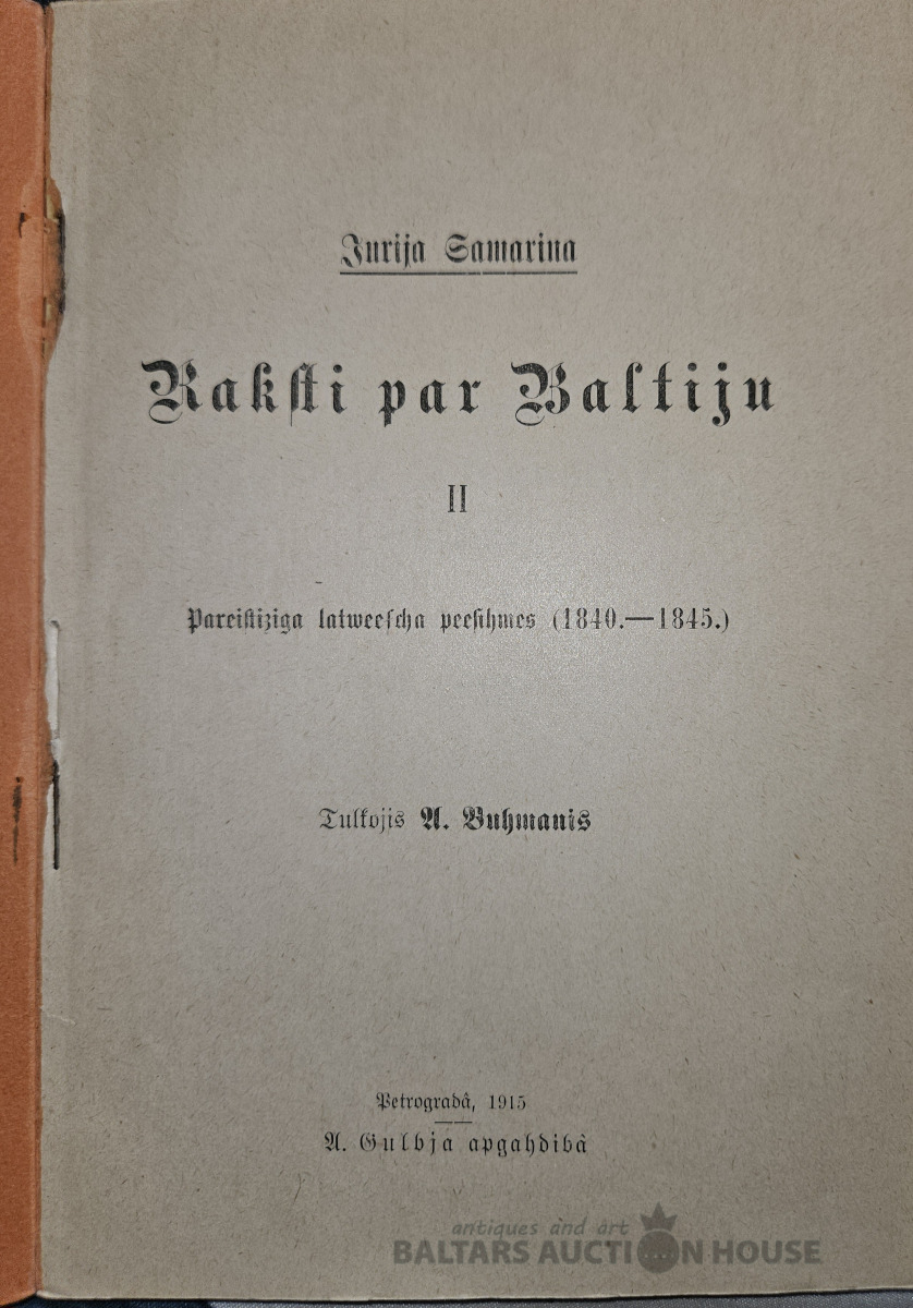 Jurijs Samārins "Raksti par Baltiju " II .Petrogradā 1915. Pareizticīgā latvieša piezīmes (1840-1845).