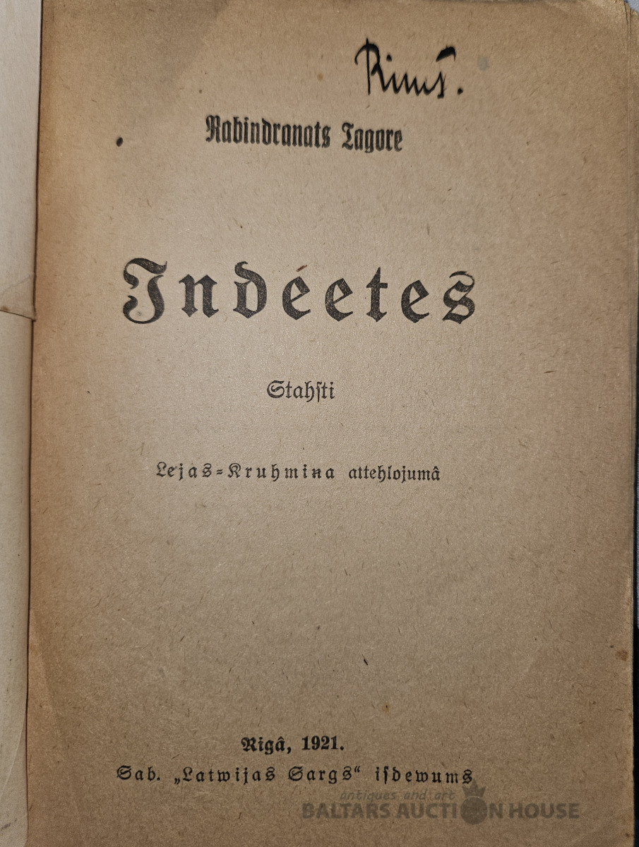 Rabindranats Tagore " Indietes" Rīga 1921.Sabiedriba "Latvijas sargs"