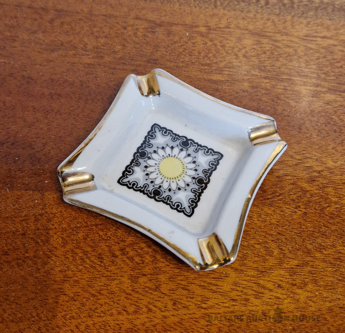 Rīgas porcelāns . Pelnu trauks L - 7,6 cm , normālā stāvoklī , vietām zeltījuma nodilums