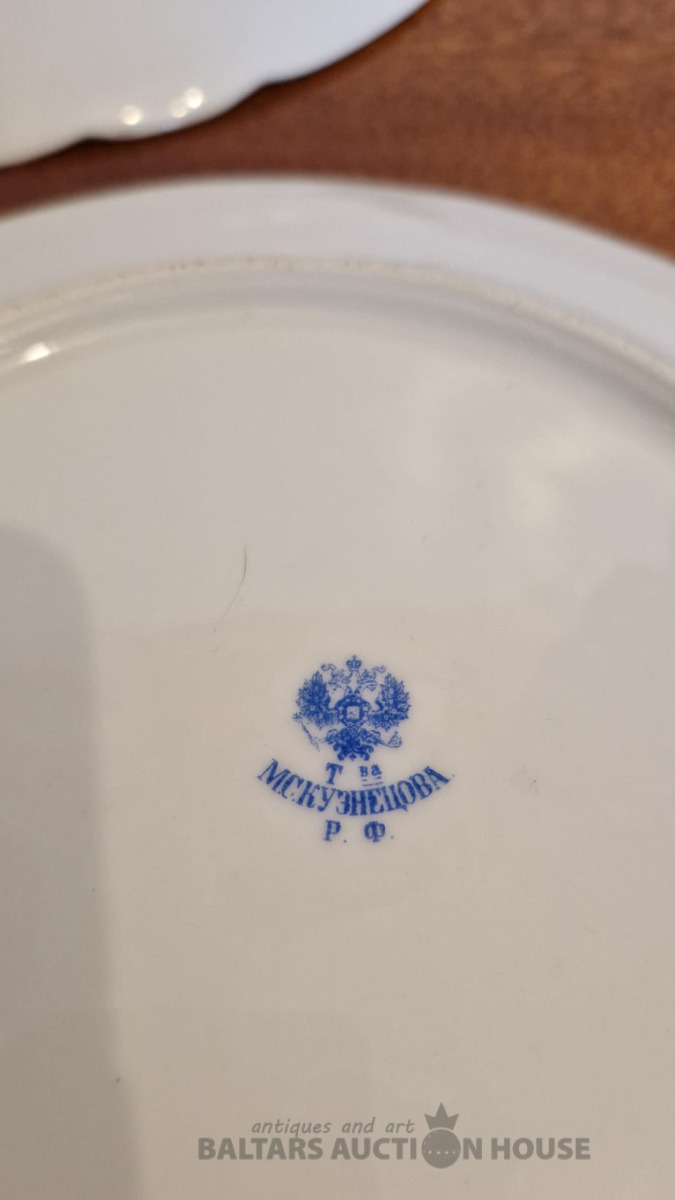 Cara laika Kuzņecova šķīvji . D - 23,7 cm . Lietoti - zeltījuma zudumi , sīki skrāpējumi un izsists robs