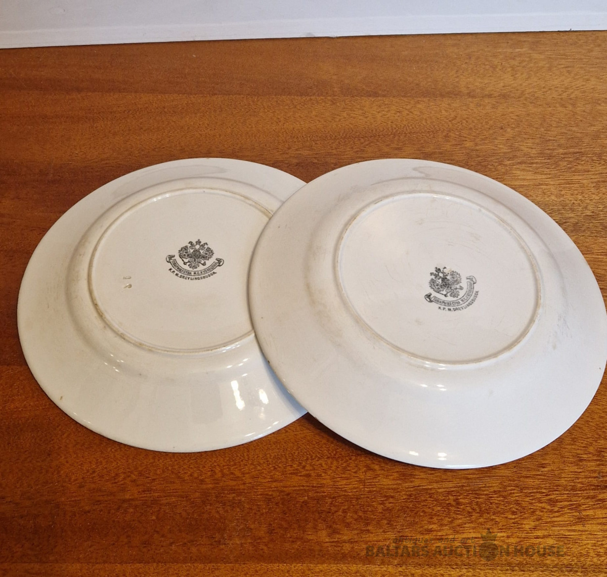 Veci cara laika Kuzņecova šķīvji . D - 24,2 cm . Lietoti - skrāpējumi , daudz glazūras plaisiņas un brūngani plankumi