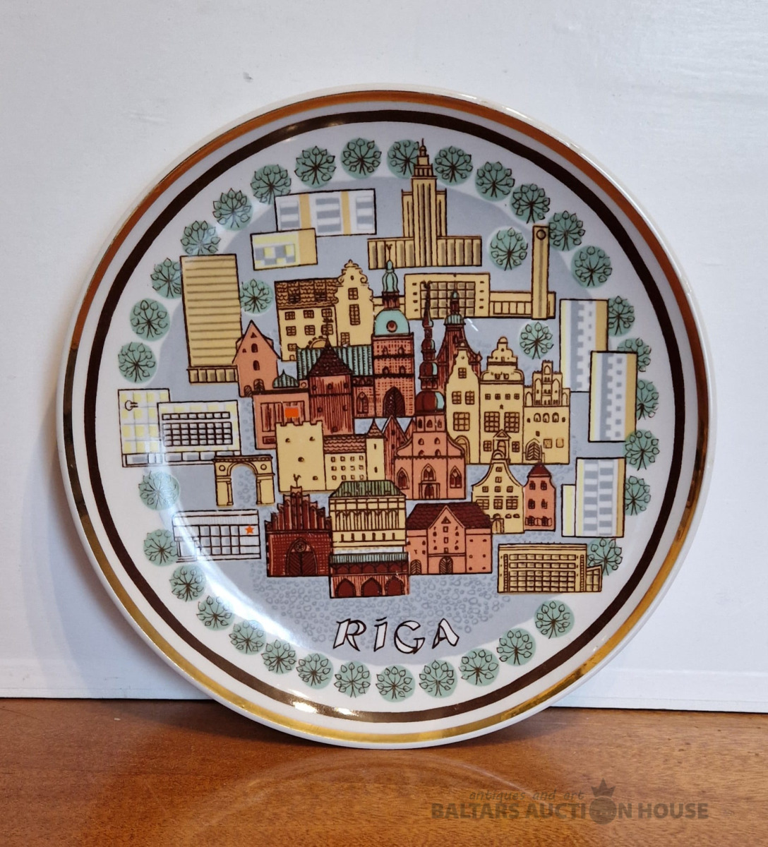 Rīgas porcelāna sienas šķīvis . D - 24,3 cm . Mazlietots , pie pamatnes neliels robiņš