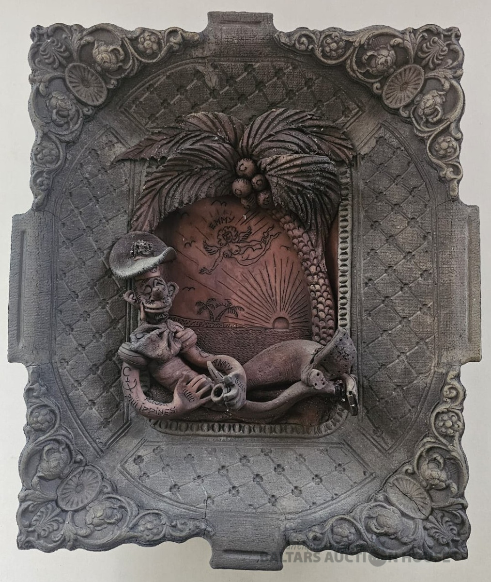 Valdis de Būrs Unikāls, interesants veidojums - sienas glezna, māls , izmērs 31.8*27.6 cm