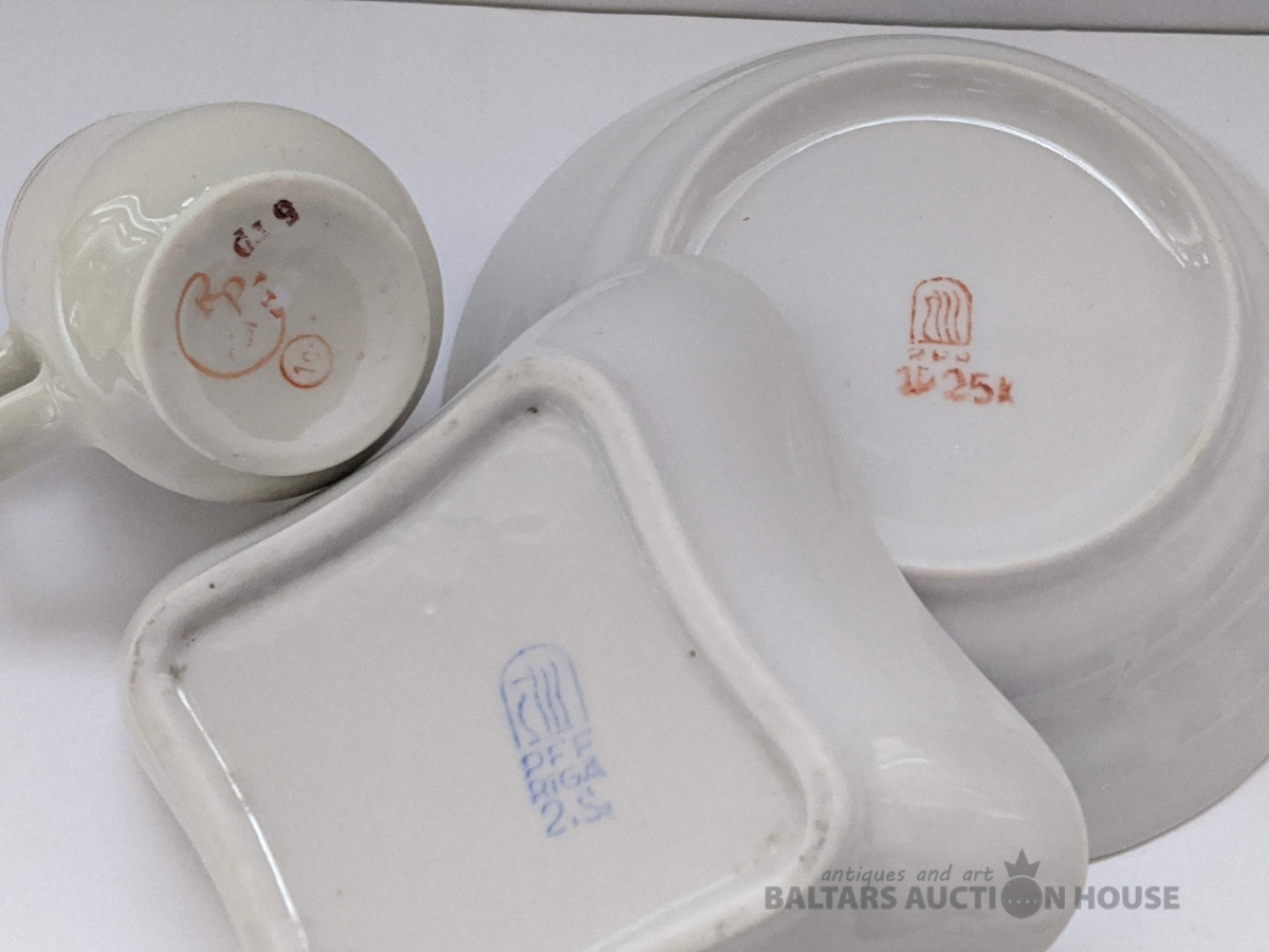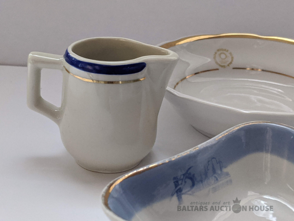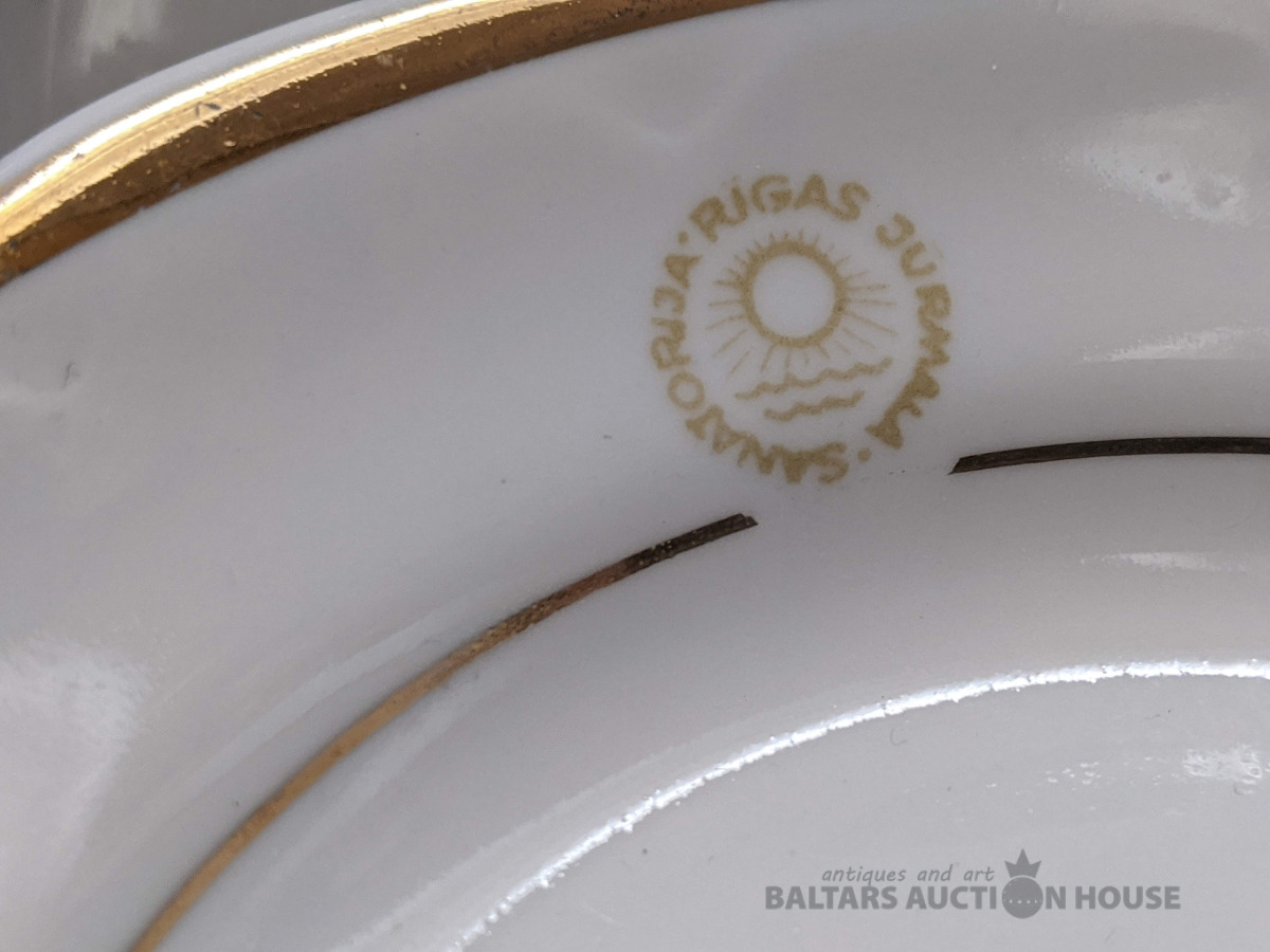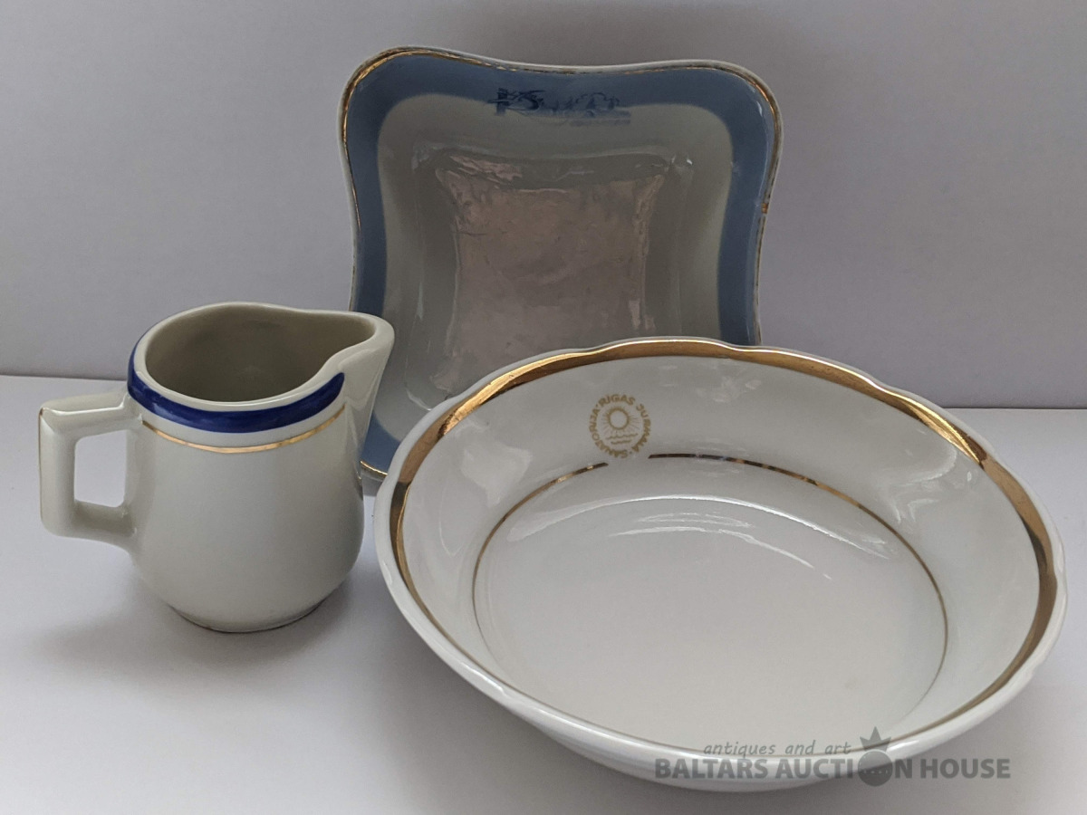 Trīs trauki kolekcijai ar logo, RESTORANS RIGA, SANATORIJA RIGAS JURMALA, 60-80-tie gadi, četrkantigajai bļodiņai zelts padzisis un vidu rupniecisks defektiņš