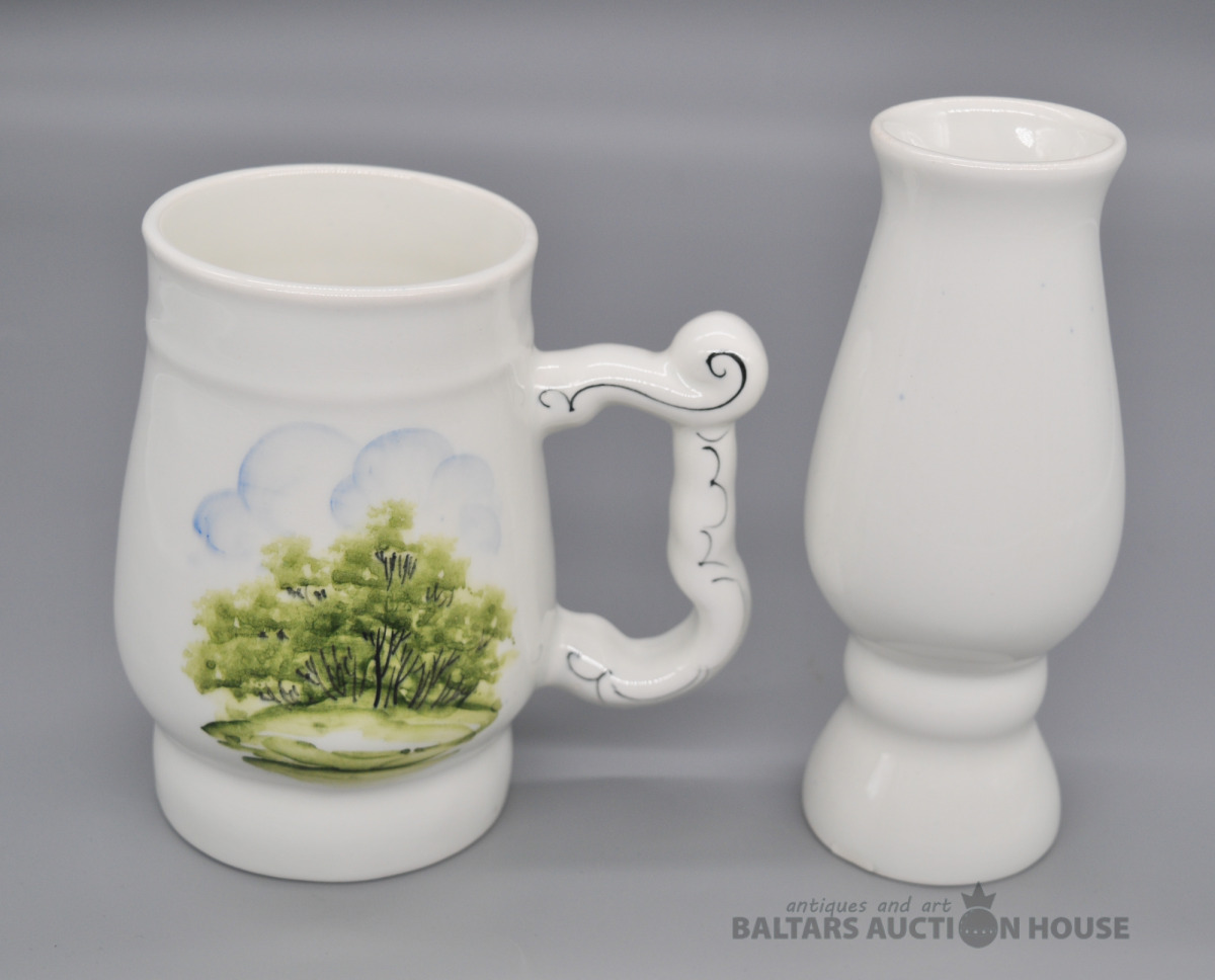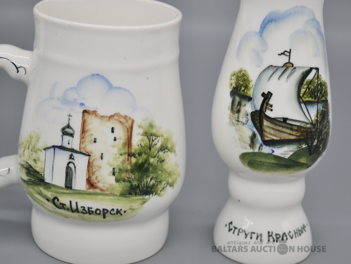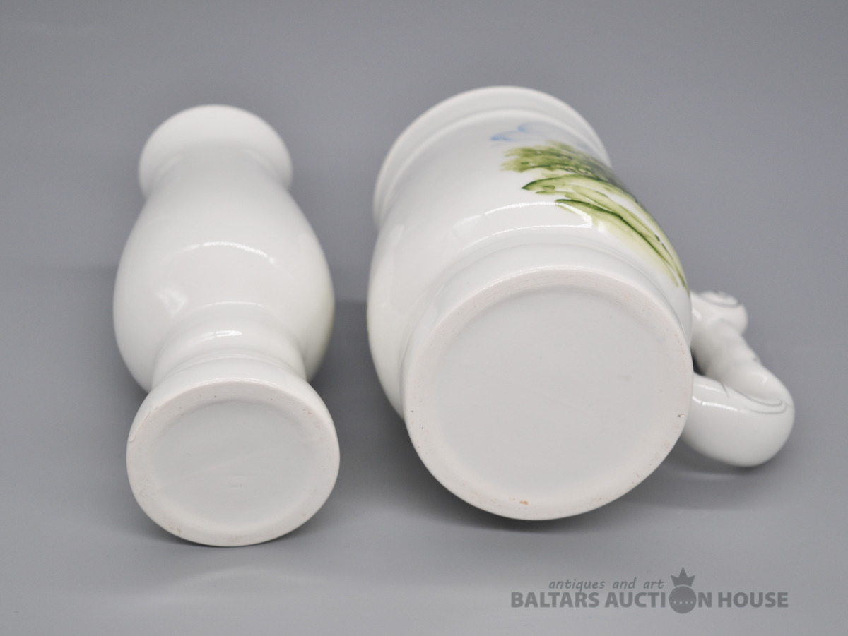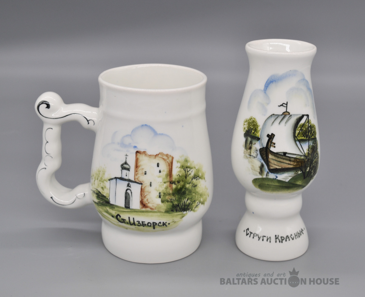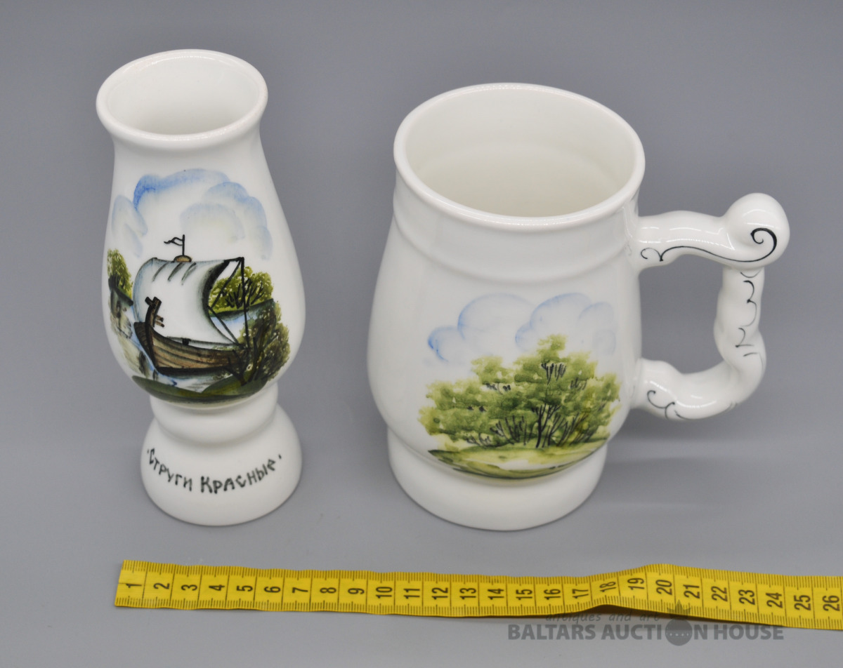 Apgleznots porcelāna kauss un vāzīte.