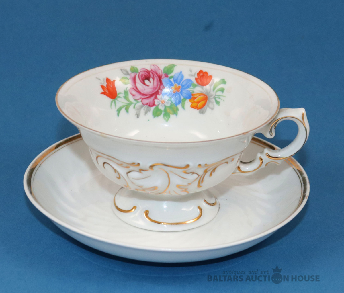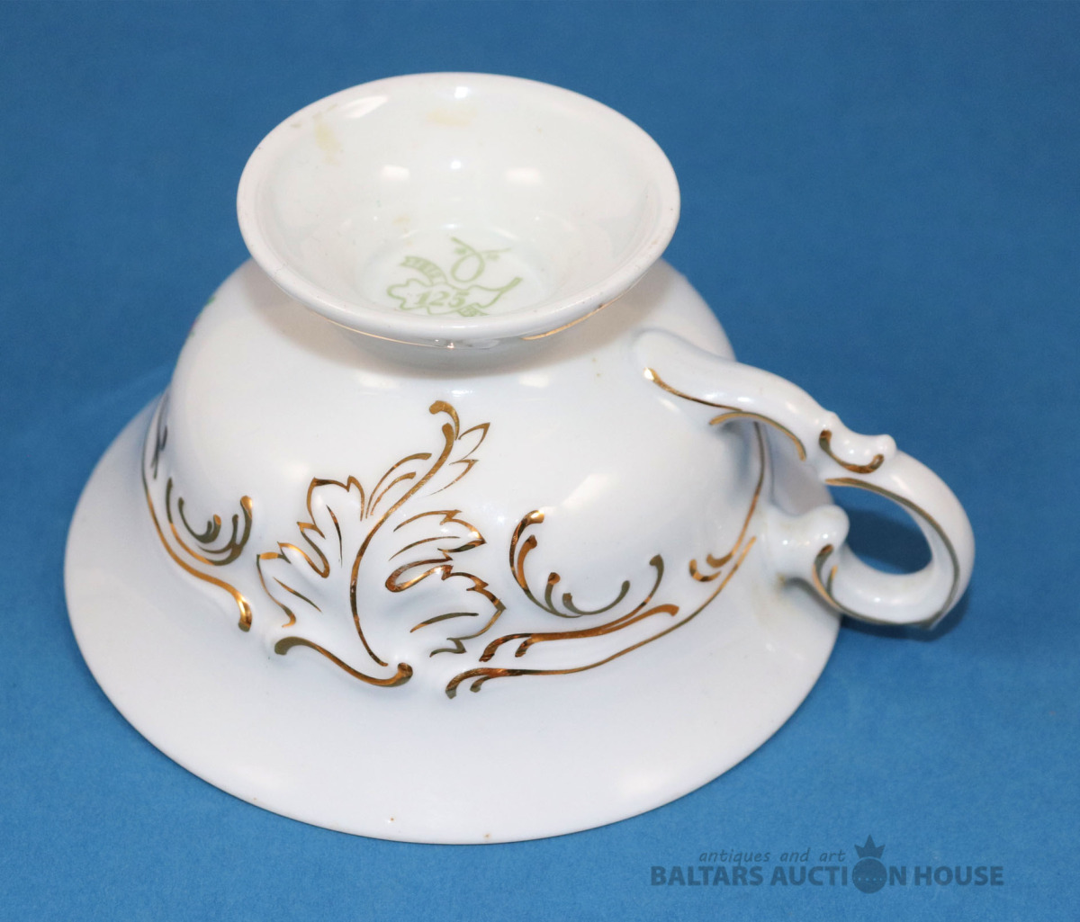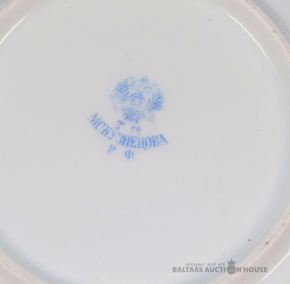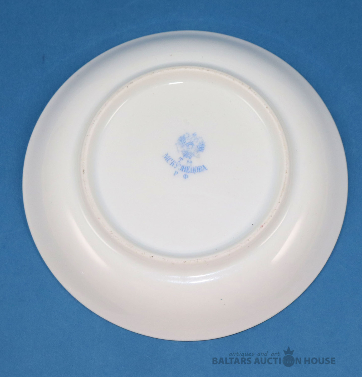 Tase ar apakštasi. Porcelāns, Kuzņecova fabrika. h=6,7 cm. d=10,5 cm un 14 cm
