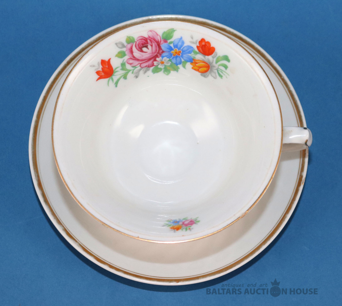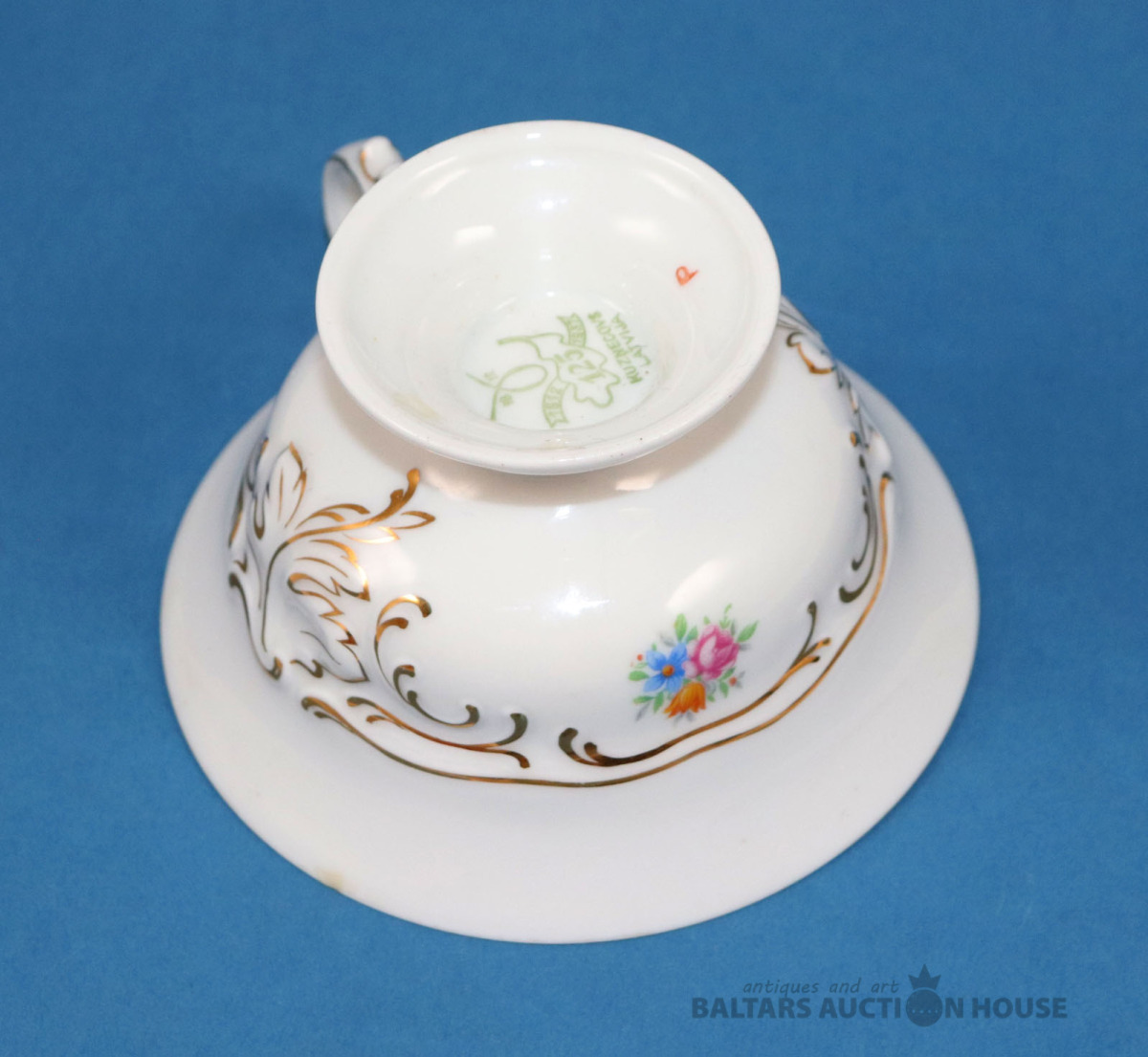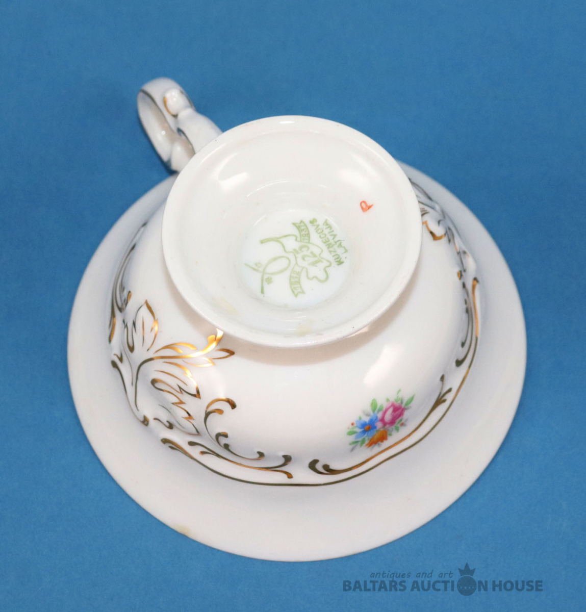 Tase ar apakštasi. Porcelāns, Kuzņecova fabrika. h=6,7 cm. d=10,5 cm un 14 cm