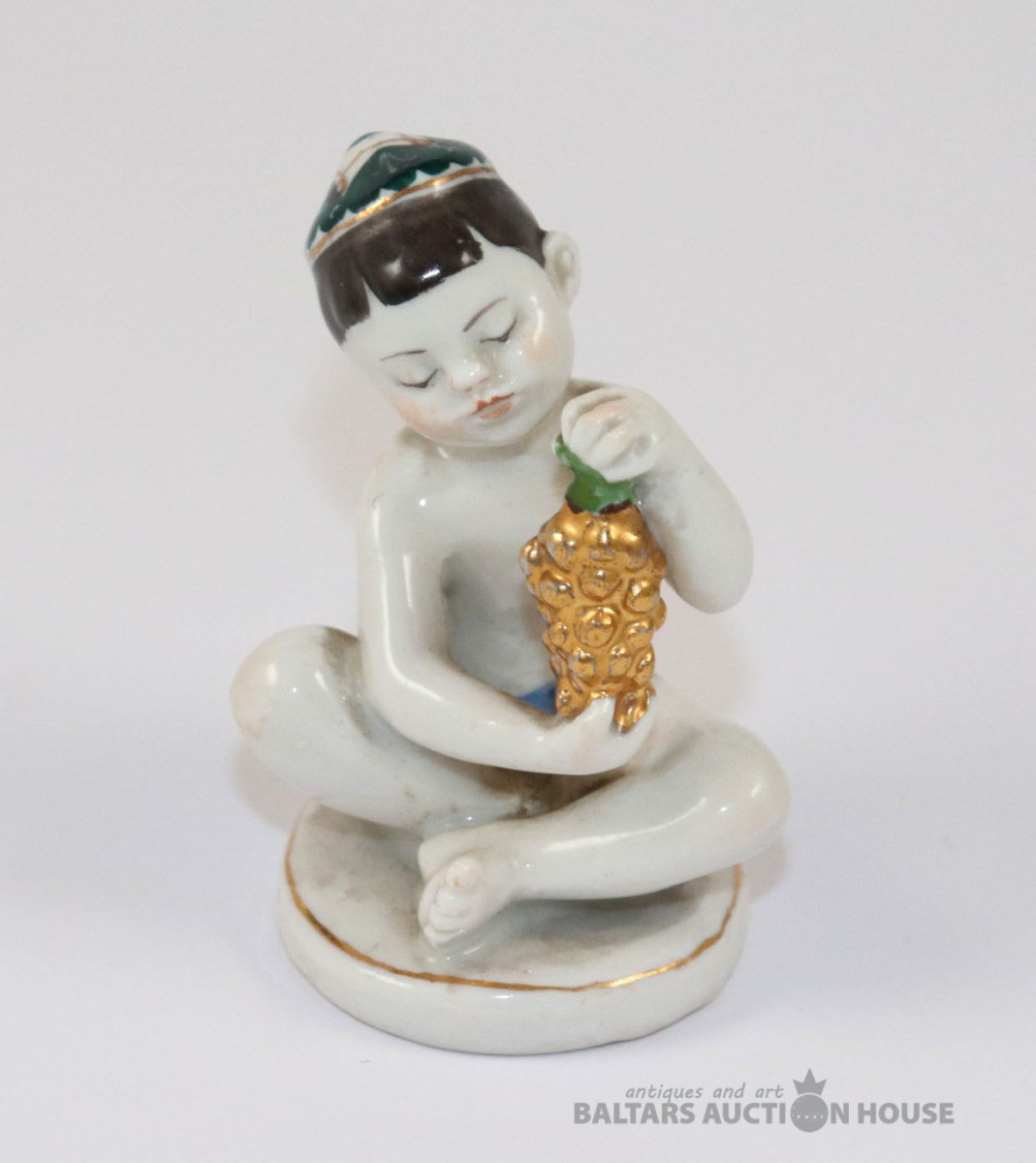 Figūra PUISĒNS AR VĪNOGĀM. Porcelāns, LFZ. h=7 cm