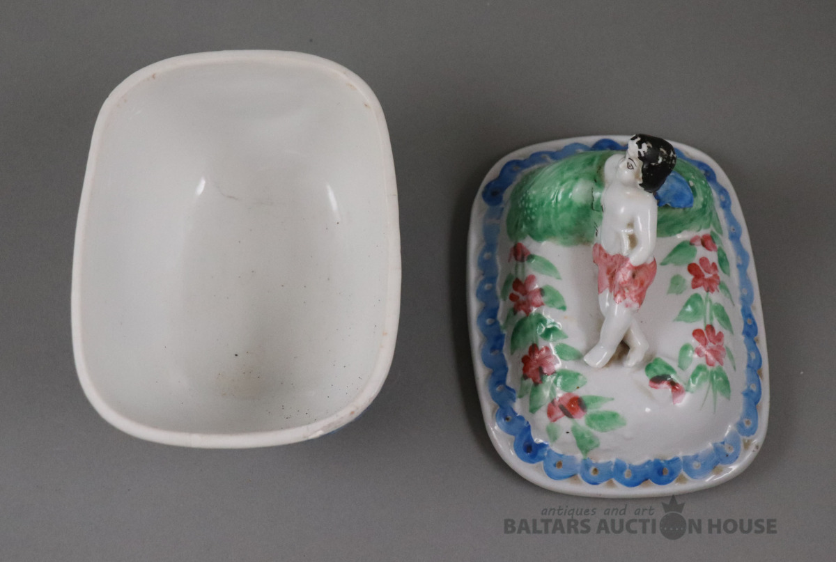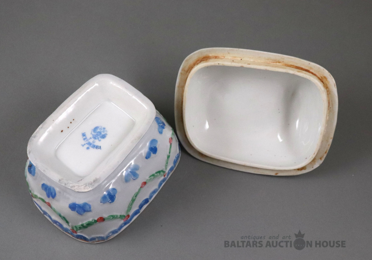 LĀDĪTE AR VĀKU. Mārtiņa Zaura autordarbs. Porcelāns. H=7,5 cm, 13x21 cm. Nošķēluma restaurācija!