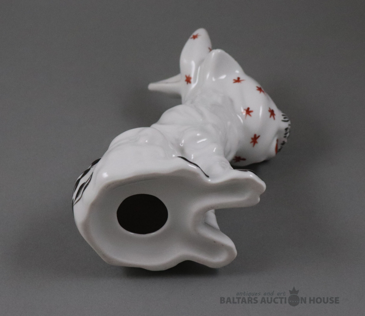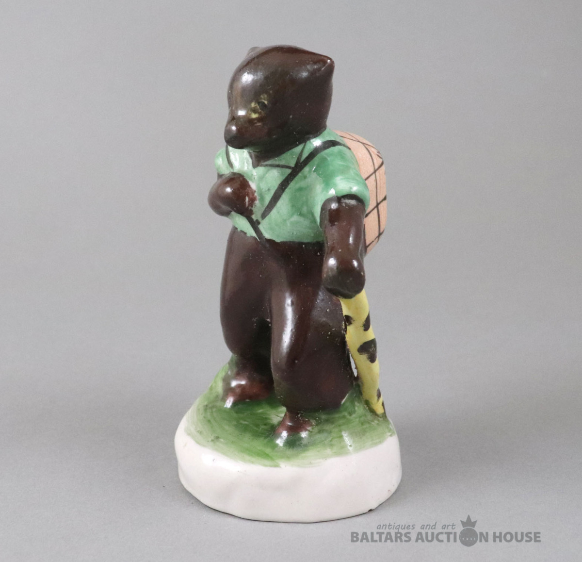 Figūriņa LĀCIS AR CEĻASOMU, porcelāns, roku gleznojums, h=12,3 cm, PSRS, artelis