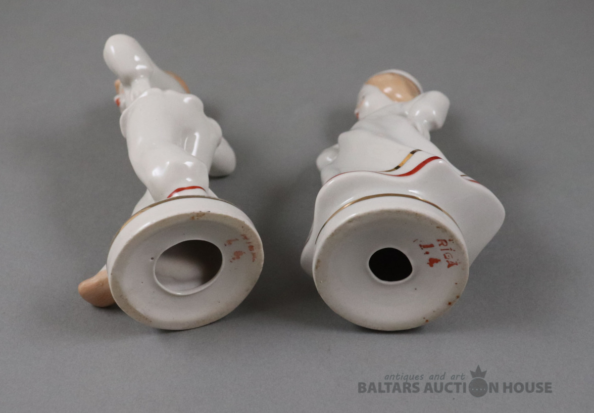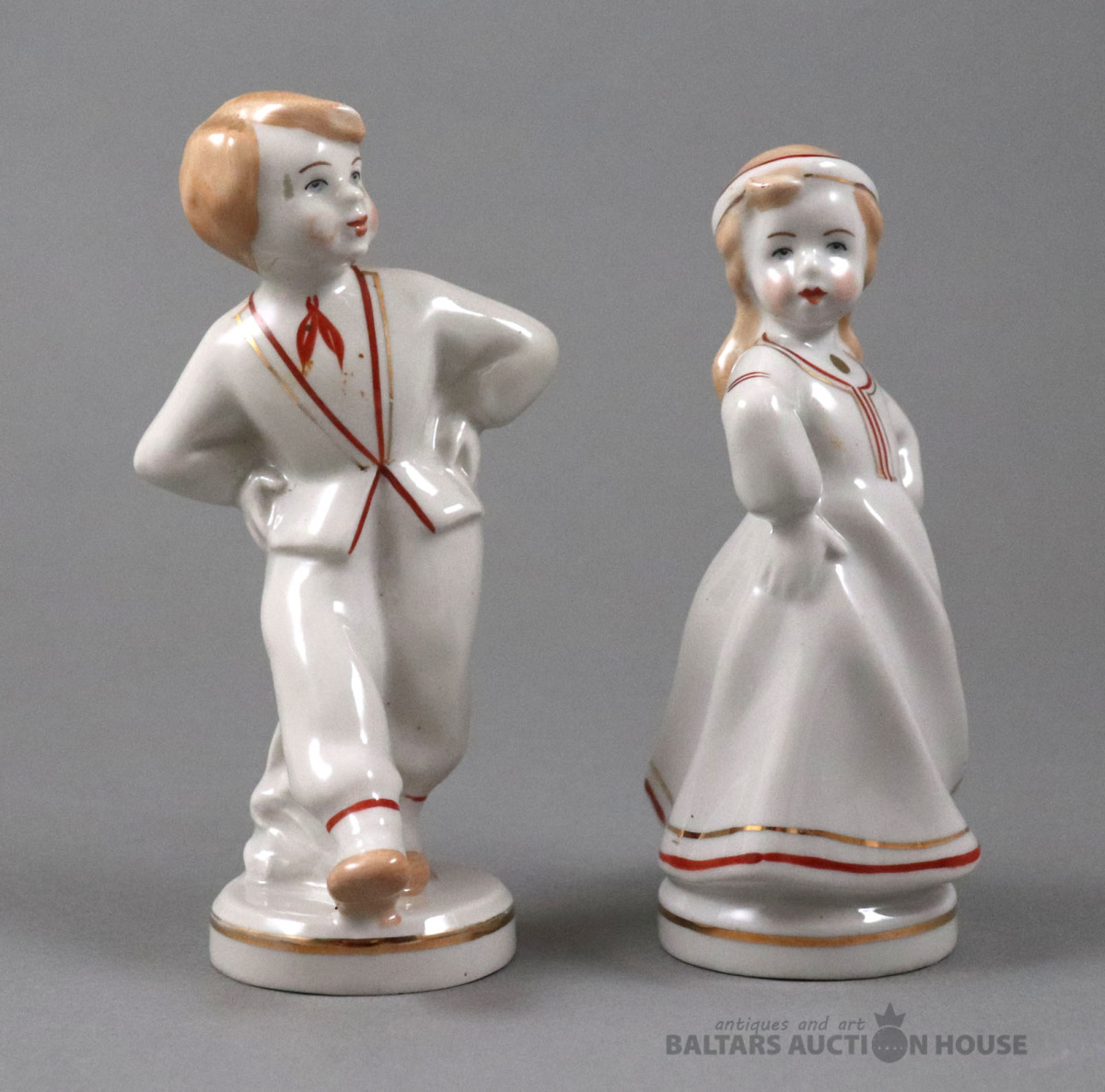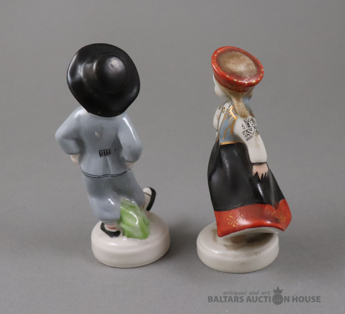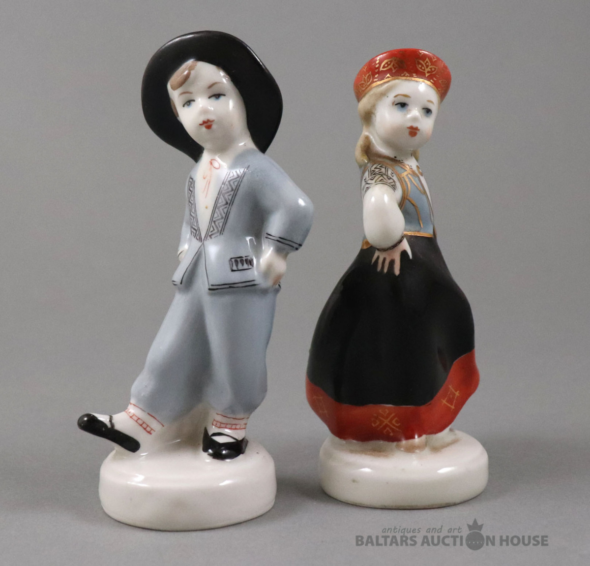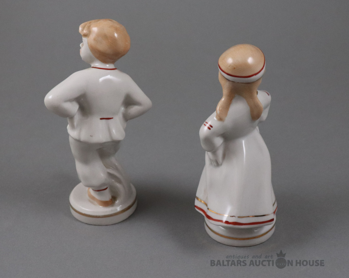 Figūriņas TAUTISKAIS PĀRIS. Porcelāns zeltījums, h=13.2 un 12,2 cm, Rīga. Puisēnam uz sejas rūpnīcas defekts!