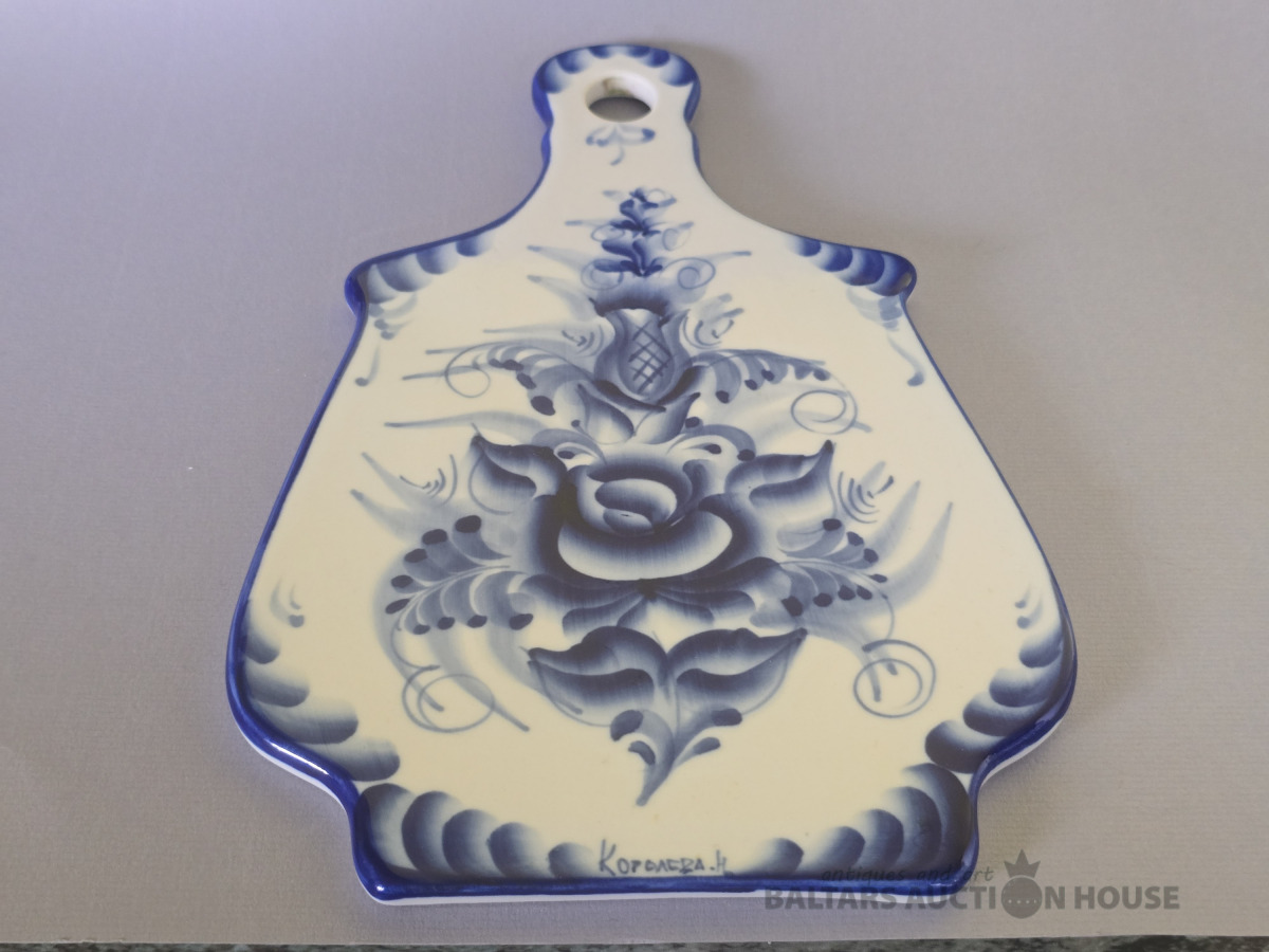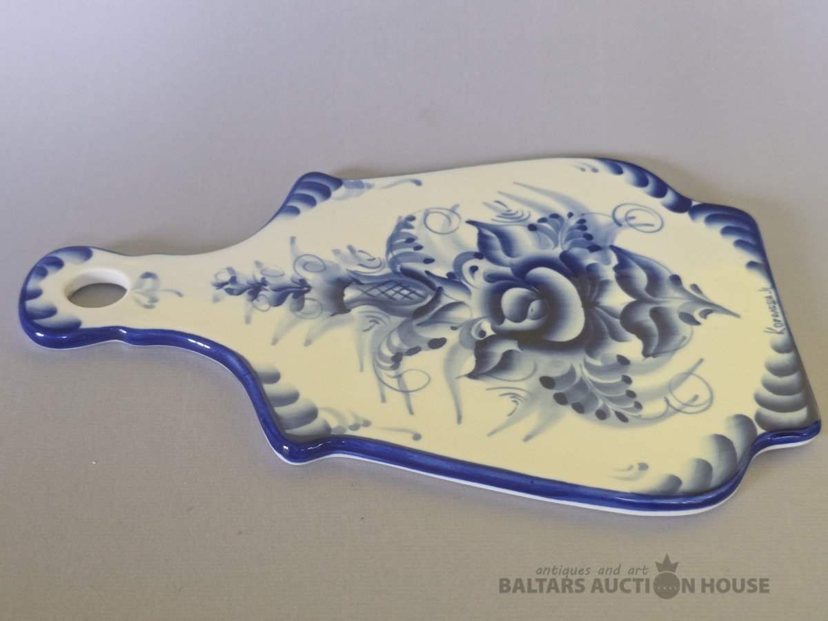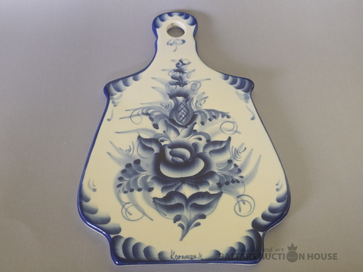Autordarbs,porcelāna siera dēlis.Kobalts. Gžeļ Porcelāna fabrika,roku gleznojums. 20 gs .