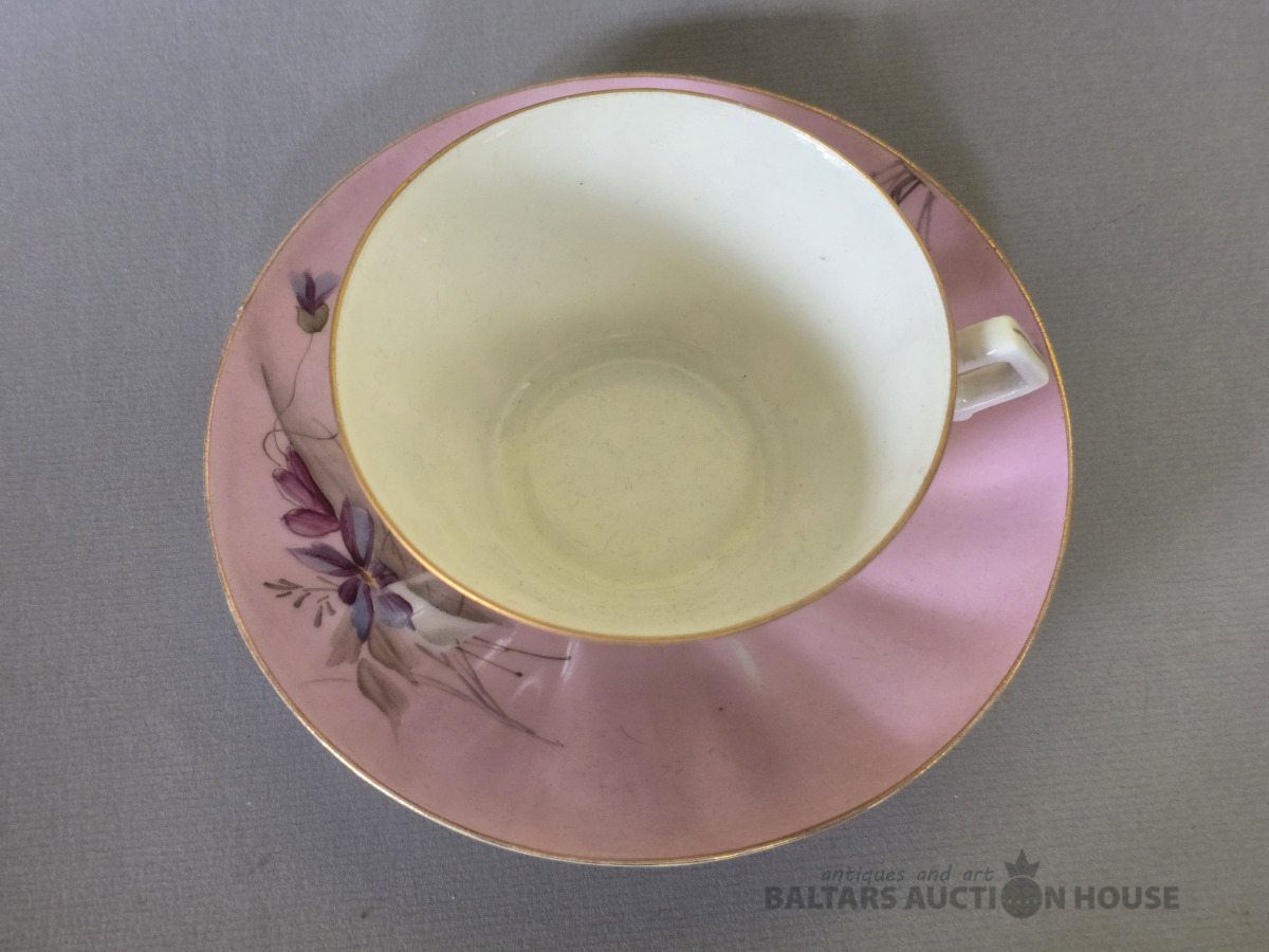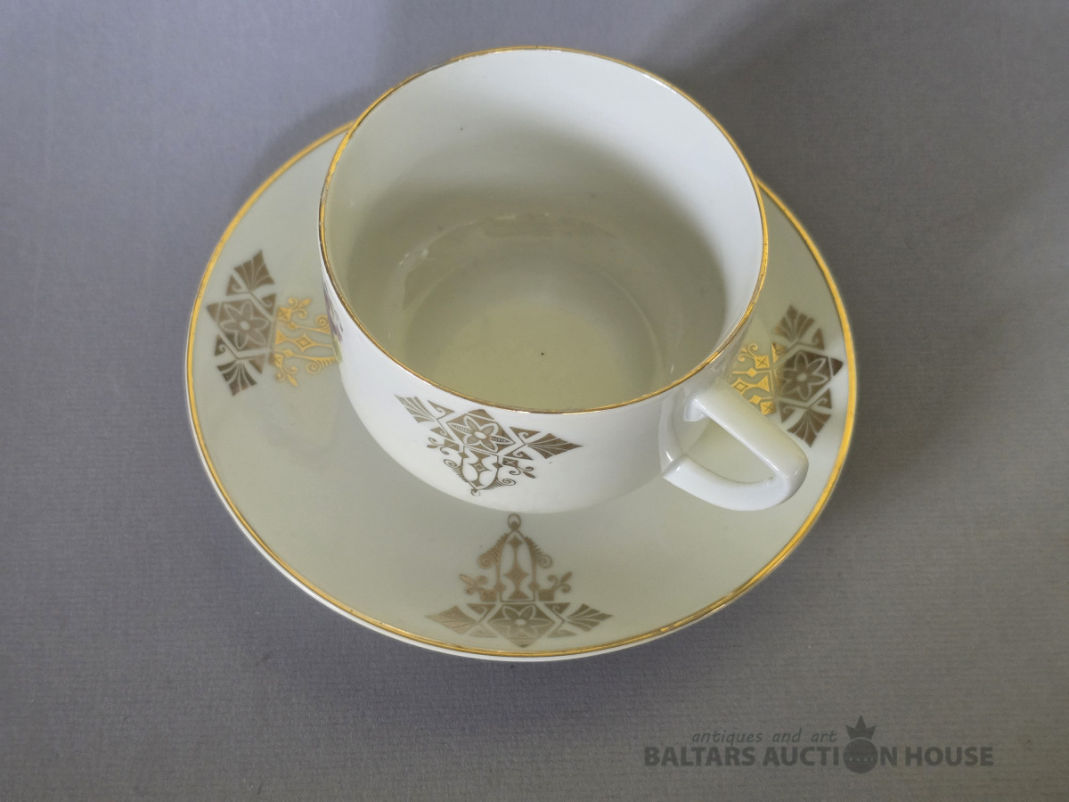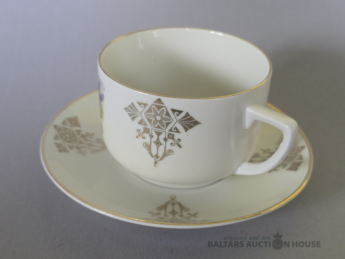 Porcelāna tējas komplekts. 19 gs. Roku gleznojums,zeltījums.