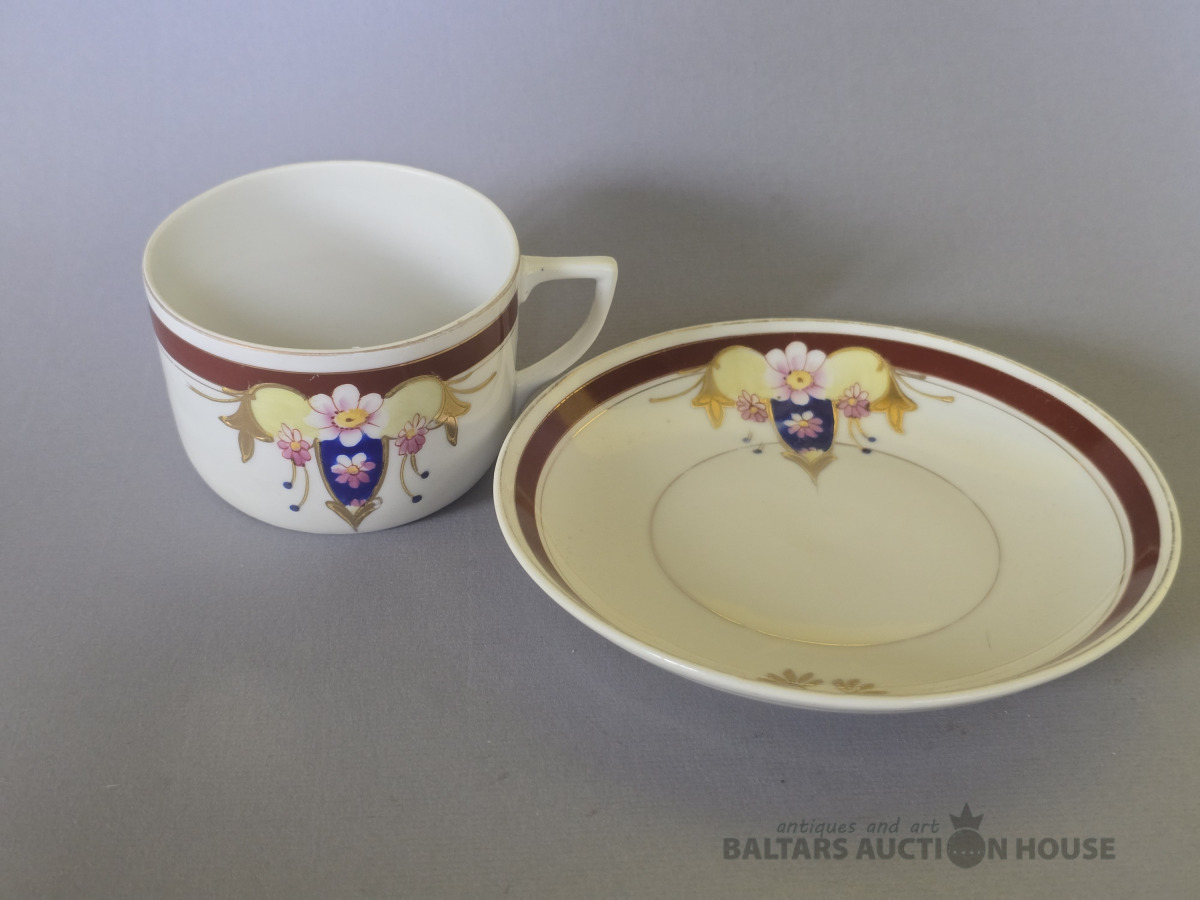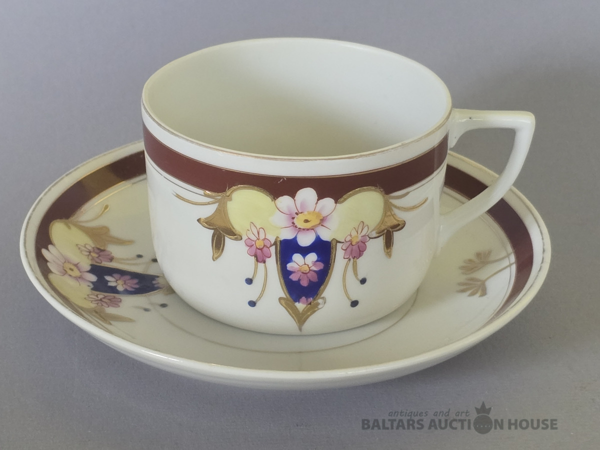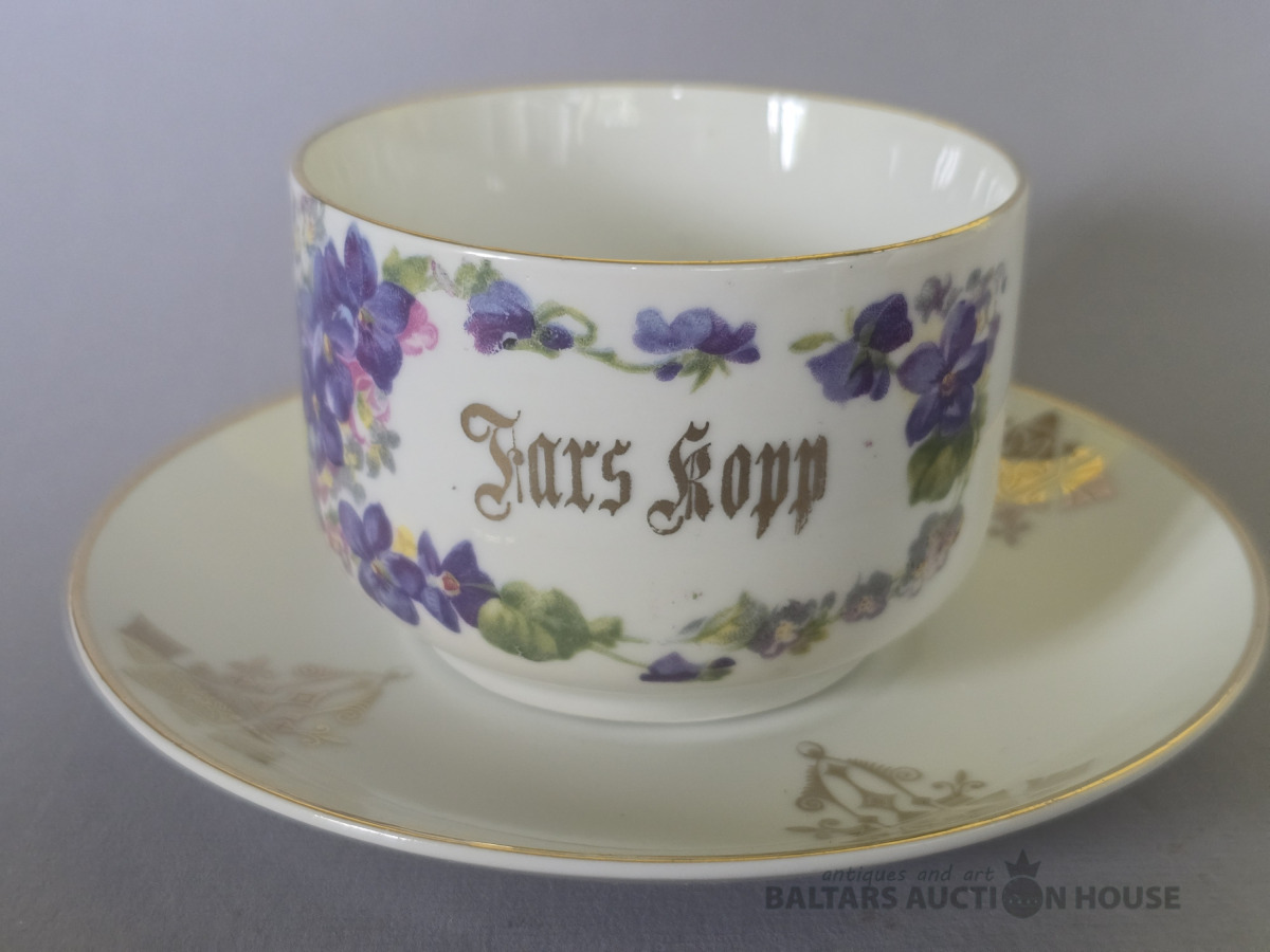 tējas pāris, porcelāns, M.S. Kuzņecova rūpnīca, roku gleznojums, Rīga (Latvija), Krievijas impērija, 1890-1910 g.