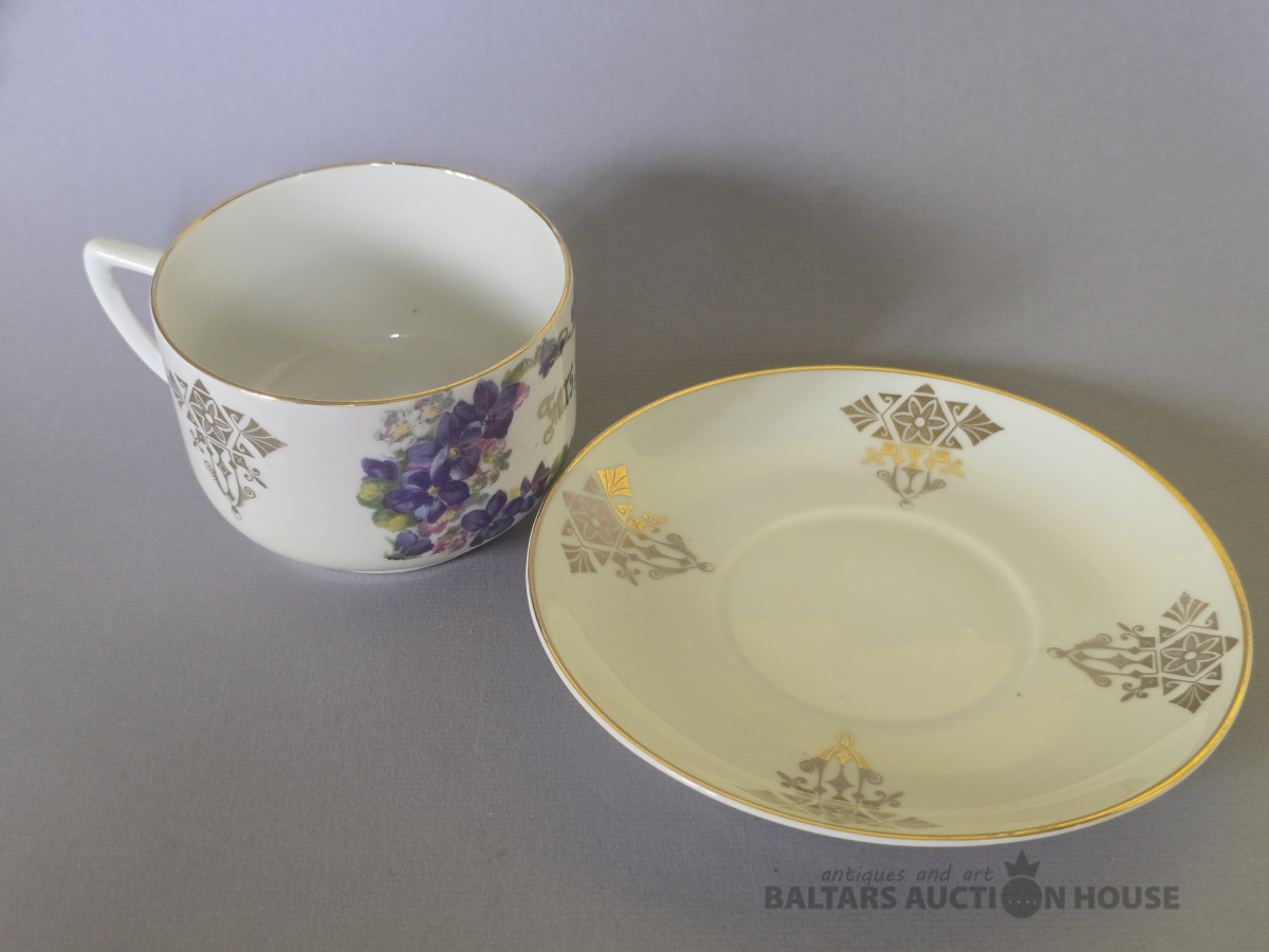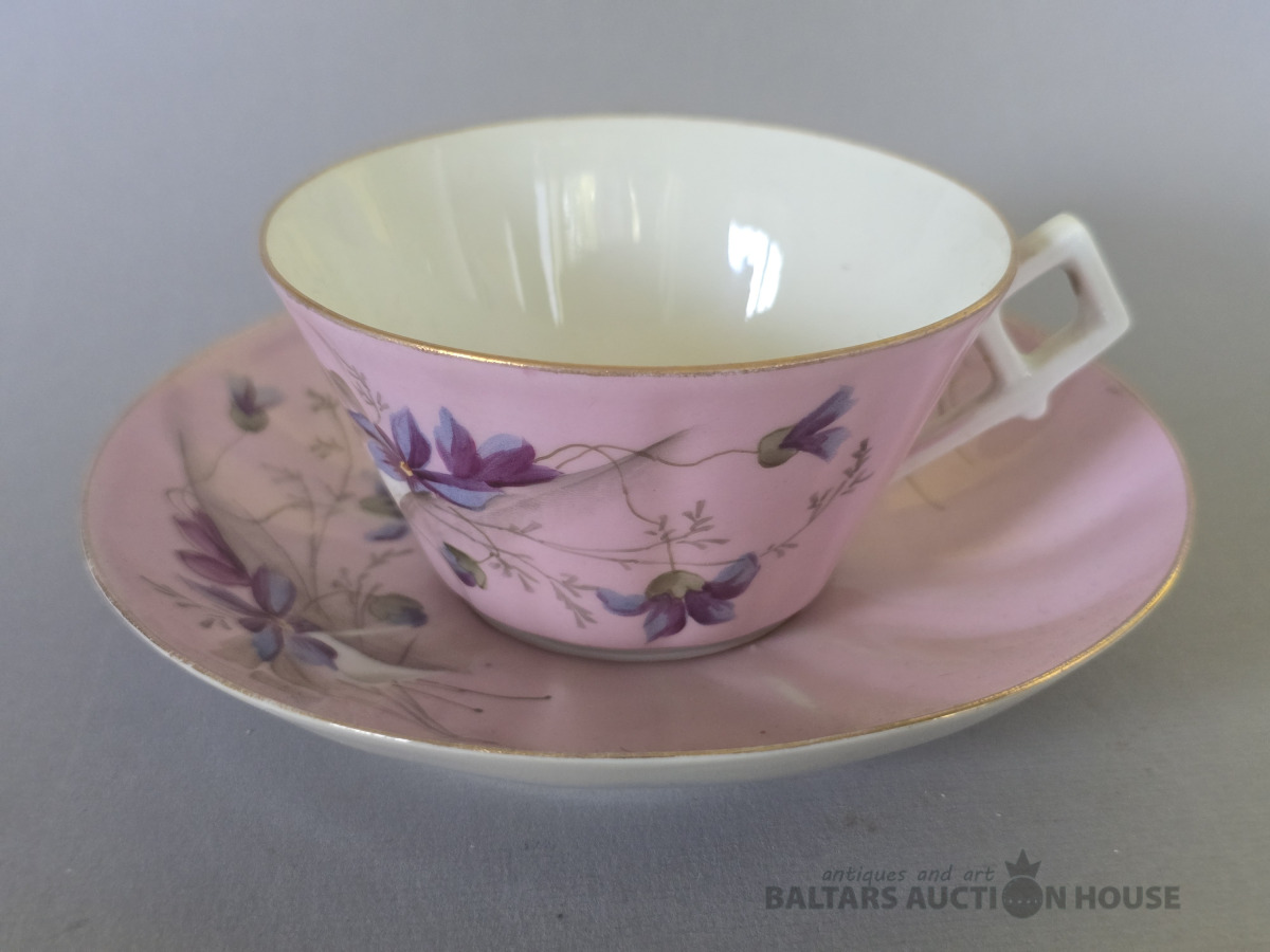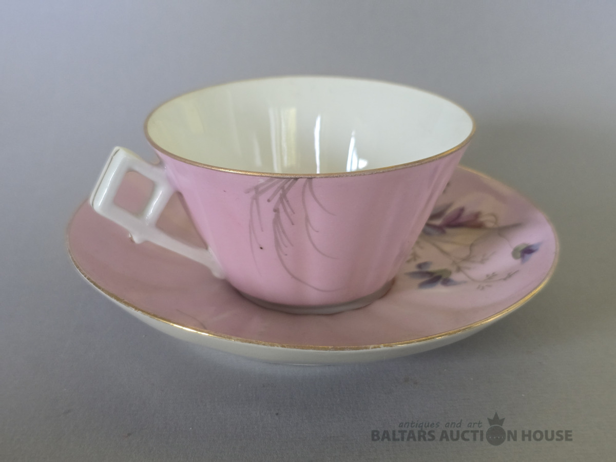 tējas pāris, porcelāns, M.S. Kuzņecova rūpnīca, roku gleznojums, Rīga (Latvija), Krievijas impērija, 1890-1910 g.