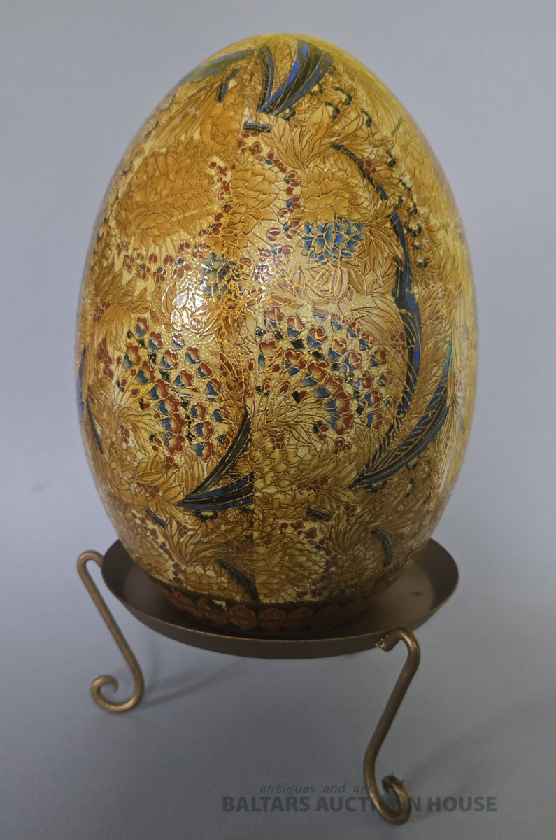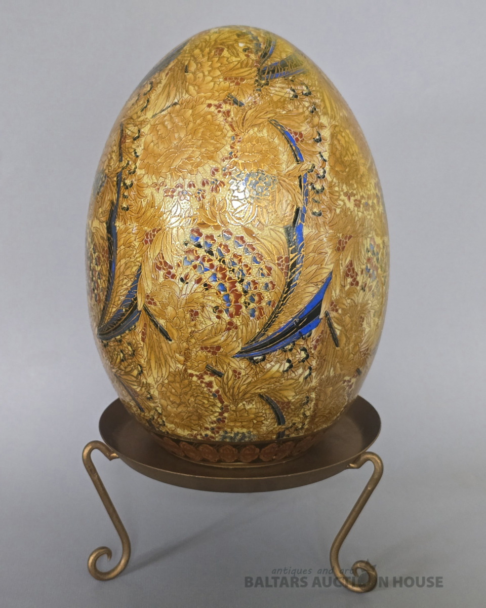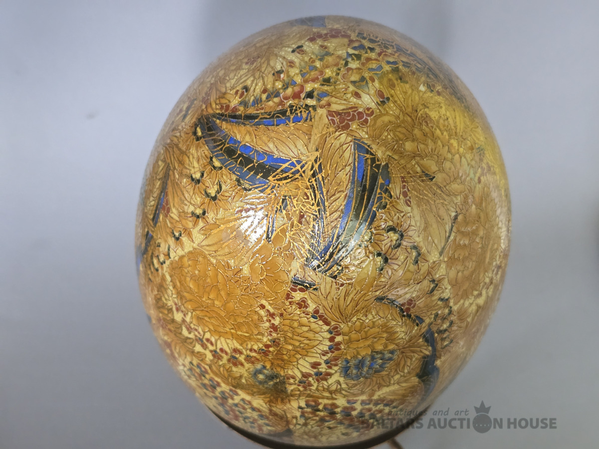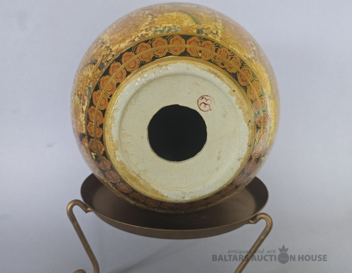 Antīka lielizmēra Satsuma porcelāna ola uz metāla podesta .Japāna.Roku gleznojums. Kolekcijas priekšmets. H 27 cm.