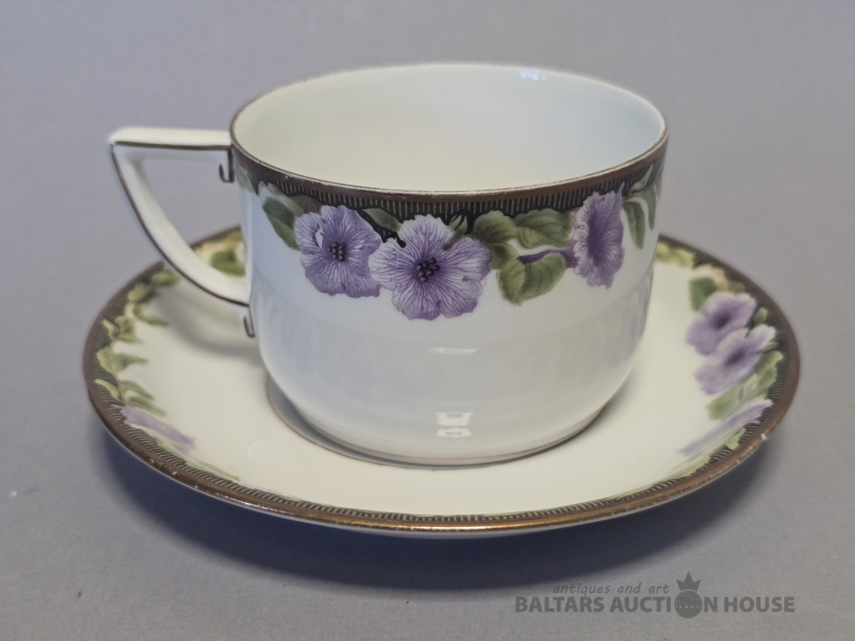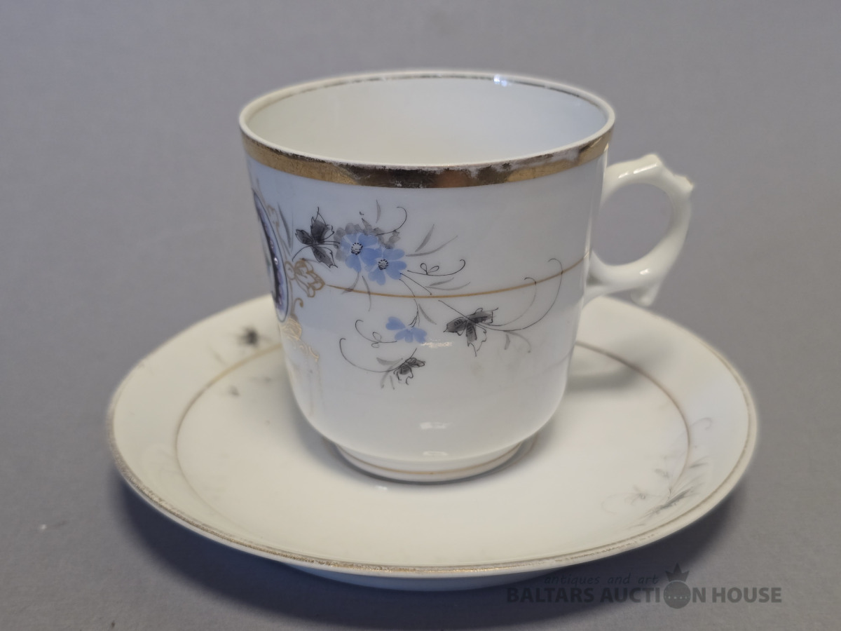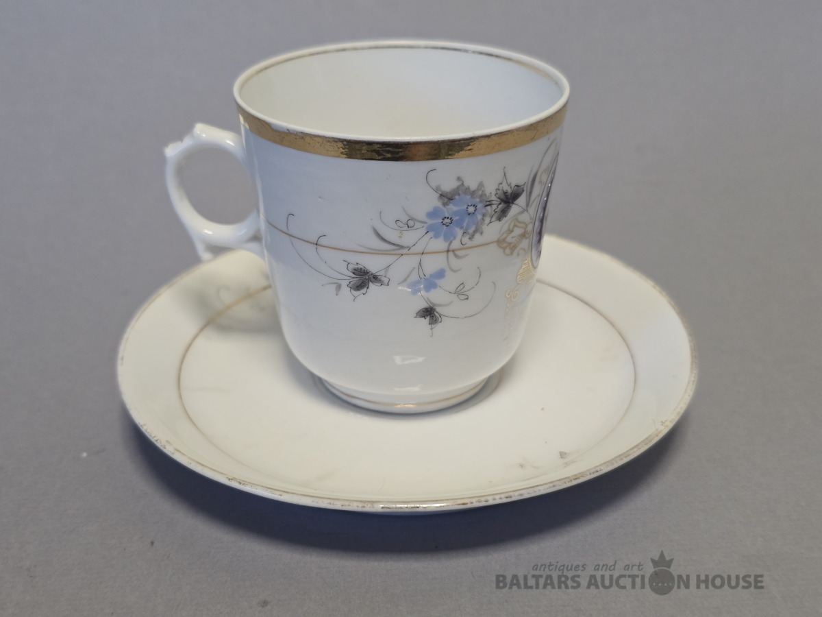 Porcelāna kafijas pāris. Kuzņecova porcelāna fabrika? 19 gs.beigas. Roku gleznojums.