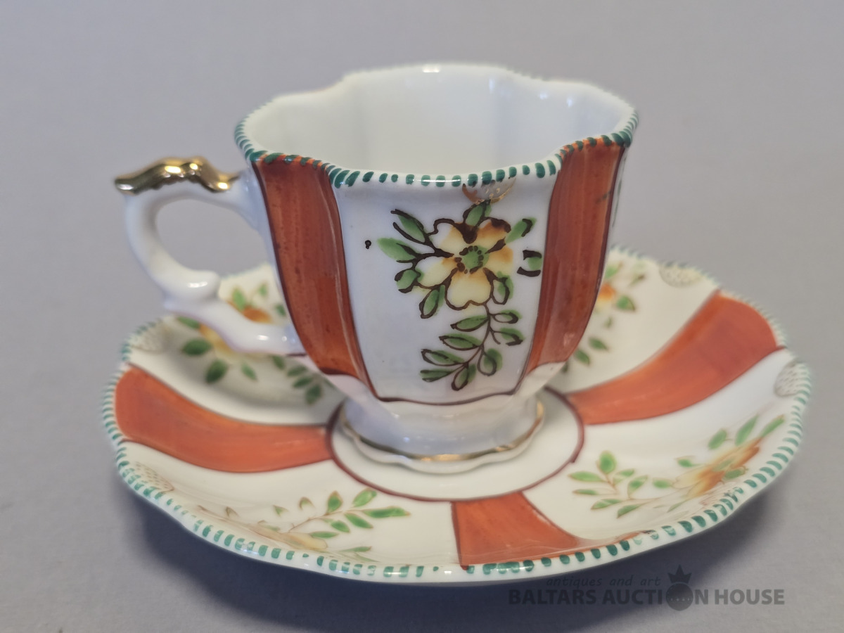 Porcelāna kafijas komplekts. Jessen ?19 gs.beigas. Roku gleznojums.