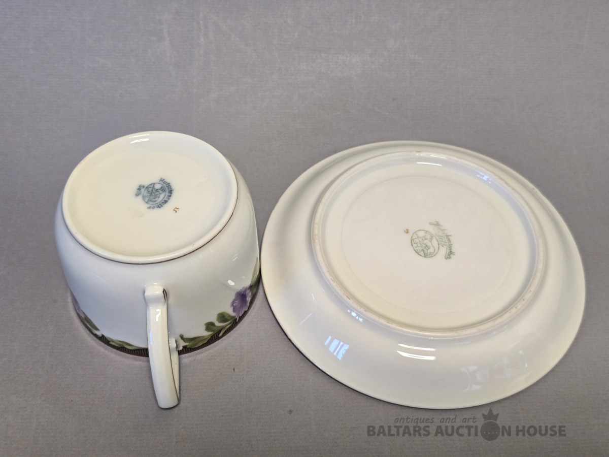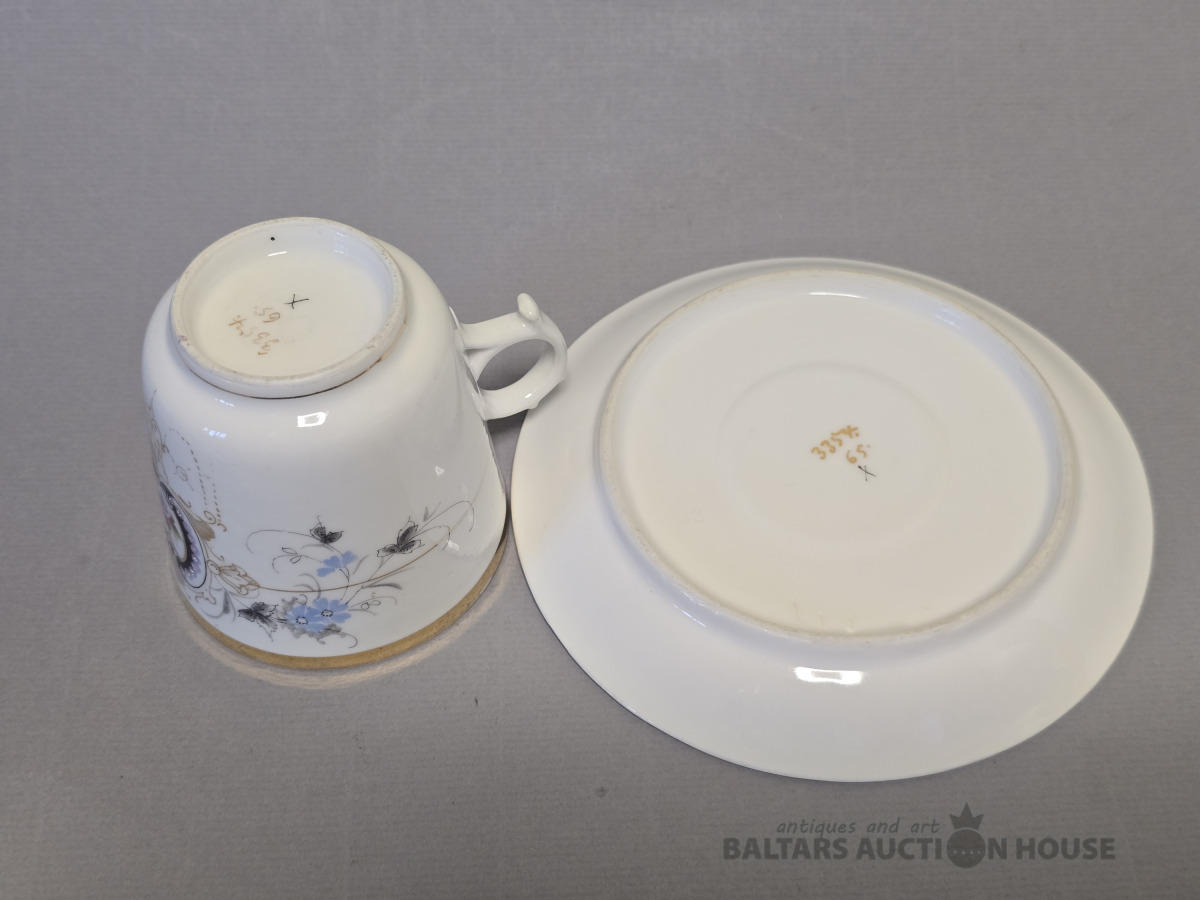 Izsmalcināts porcelāna tējas komplekts. Meisen? 19 gs.beigas . Roku gleznojums.