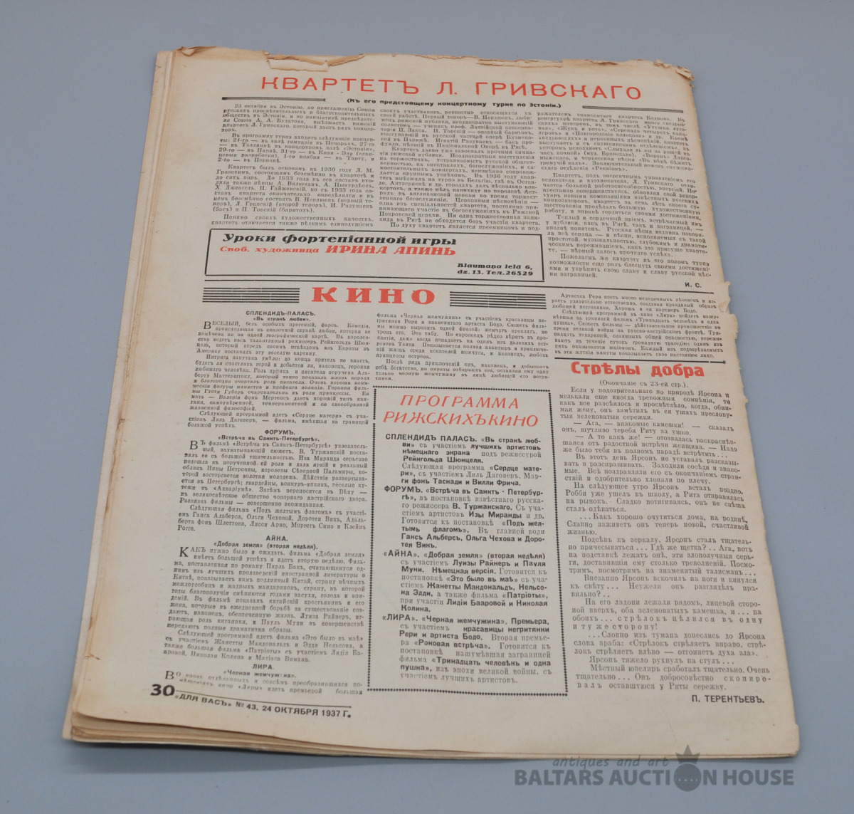 Avīze "Для Вас". Rīga 1937. Defekti.
