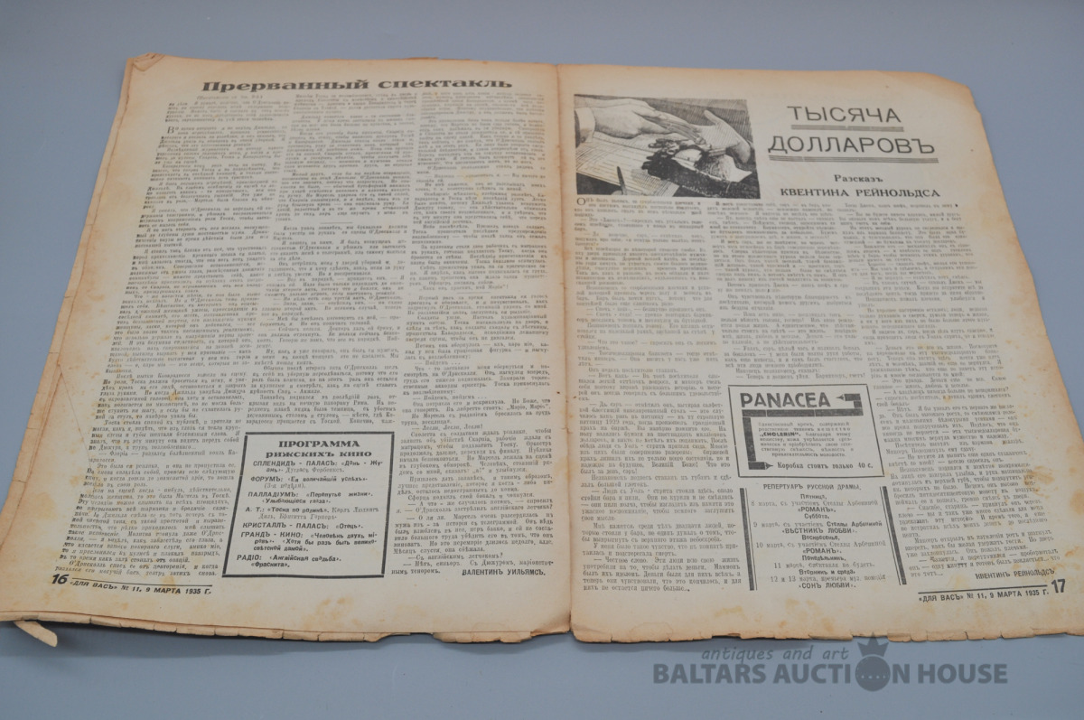 Avīze "Для Вас". Rīga 1935. Defekti.