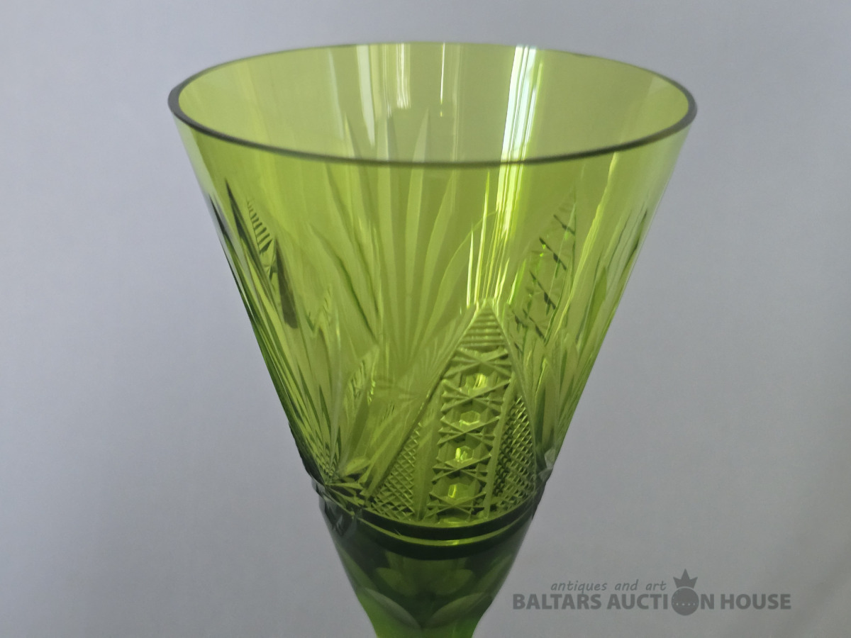 Krāsainā stikla šampanieša glāze. Iļģuciema stikla fabrika. H 19 cm. Krāsainais stikls,slīpējums.
