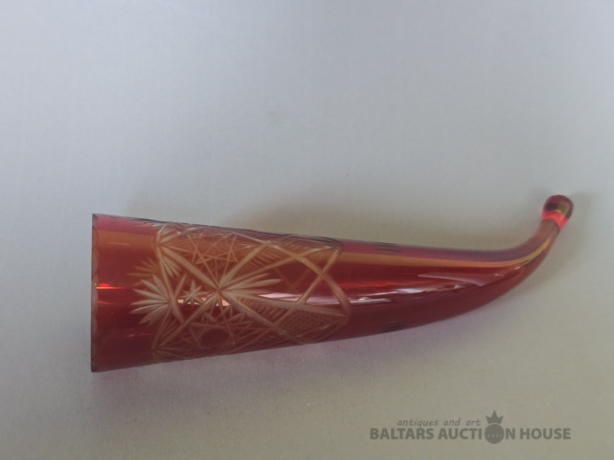 Krāsainā slikla glāze -rags.Iļģuciema stikla fabrika. H 30 cm. Divkrāsains stikls,slīpējums.