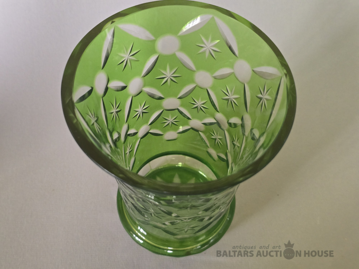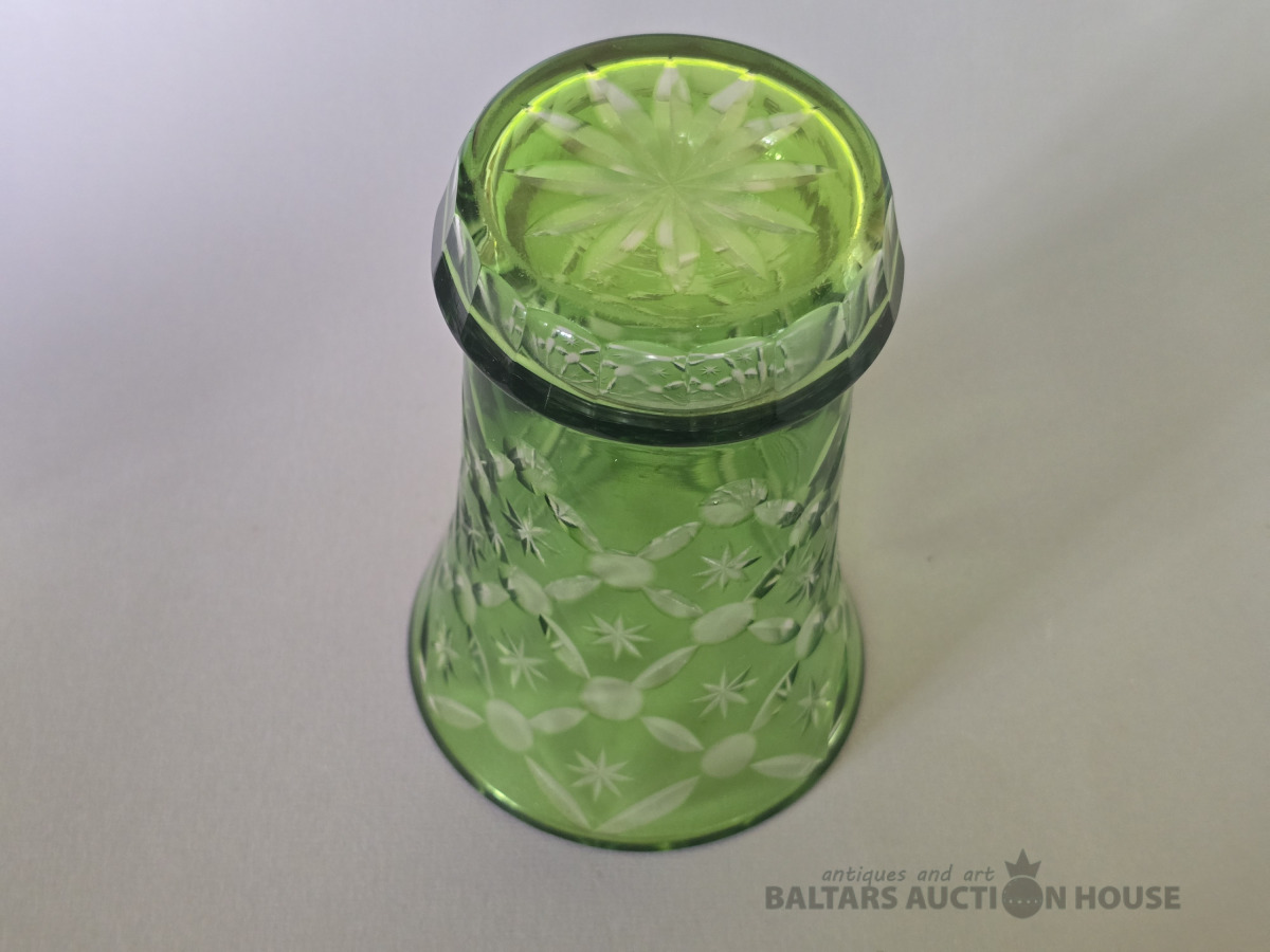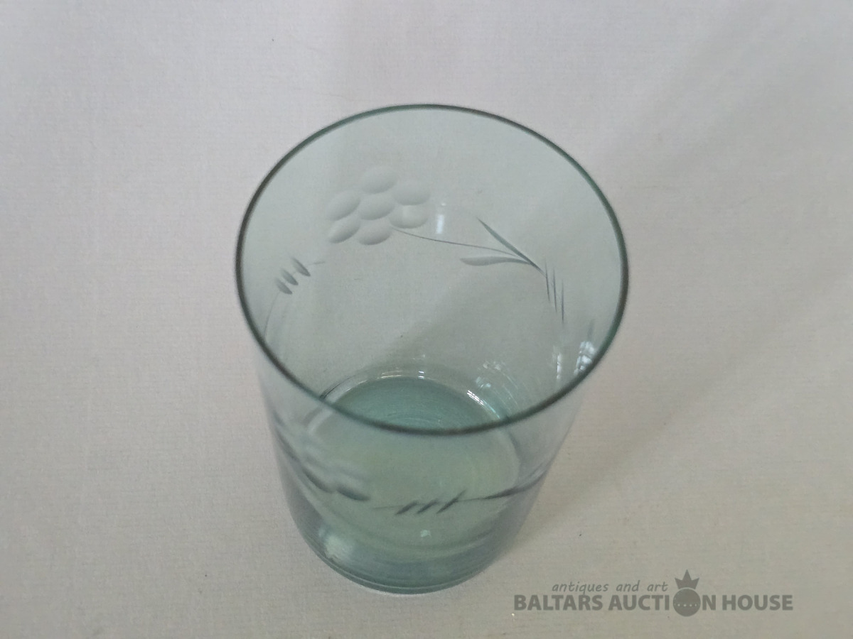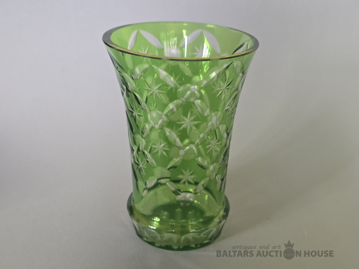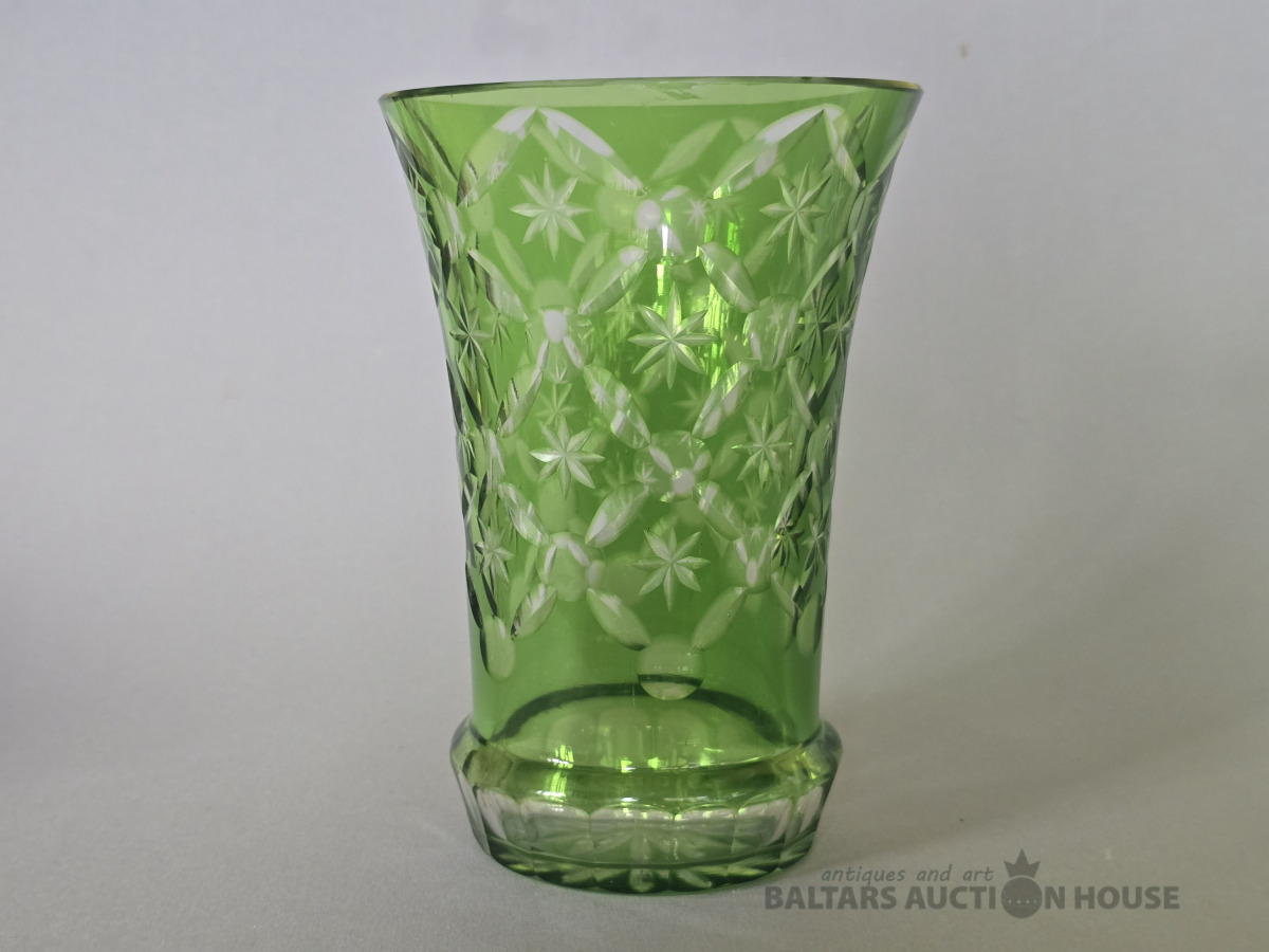 Krāsainā stikla glāze. Iļģuciema stikla fabrika. H 17.5 cm. Divkrāsains stikls,slīpējums.