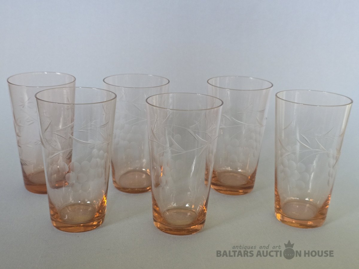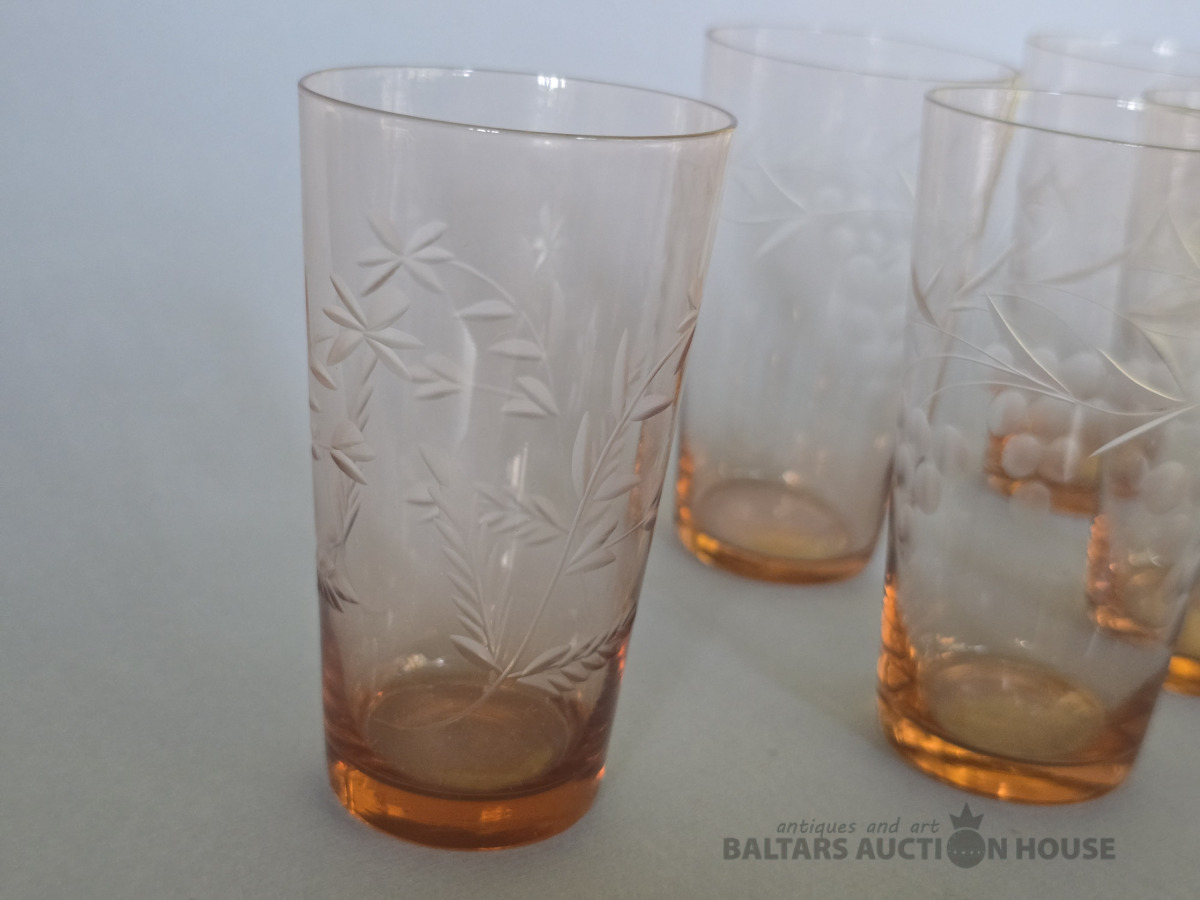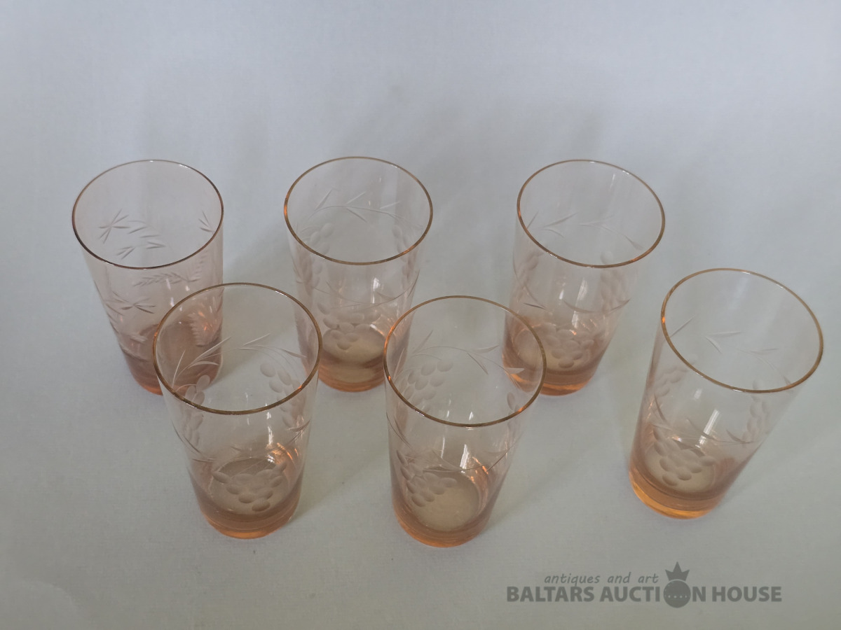 Krāsainā stikla sulas glāzes.6 gab.Iļģuciema stikla fabrika. 1 glāzei slīpējums atšķiras.
