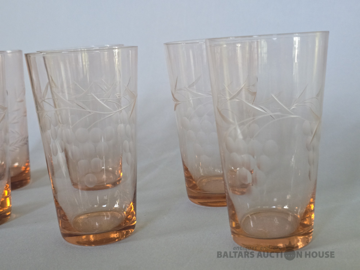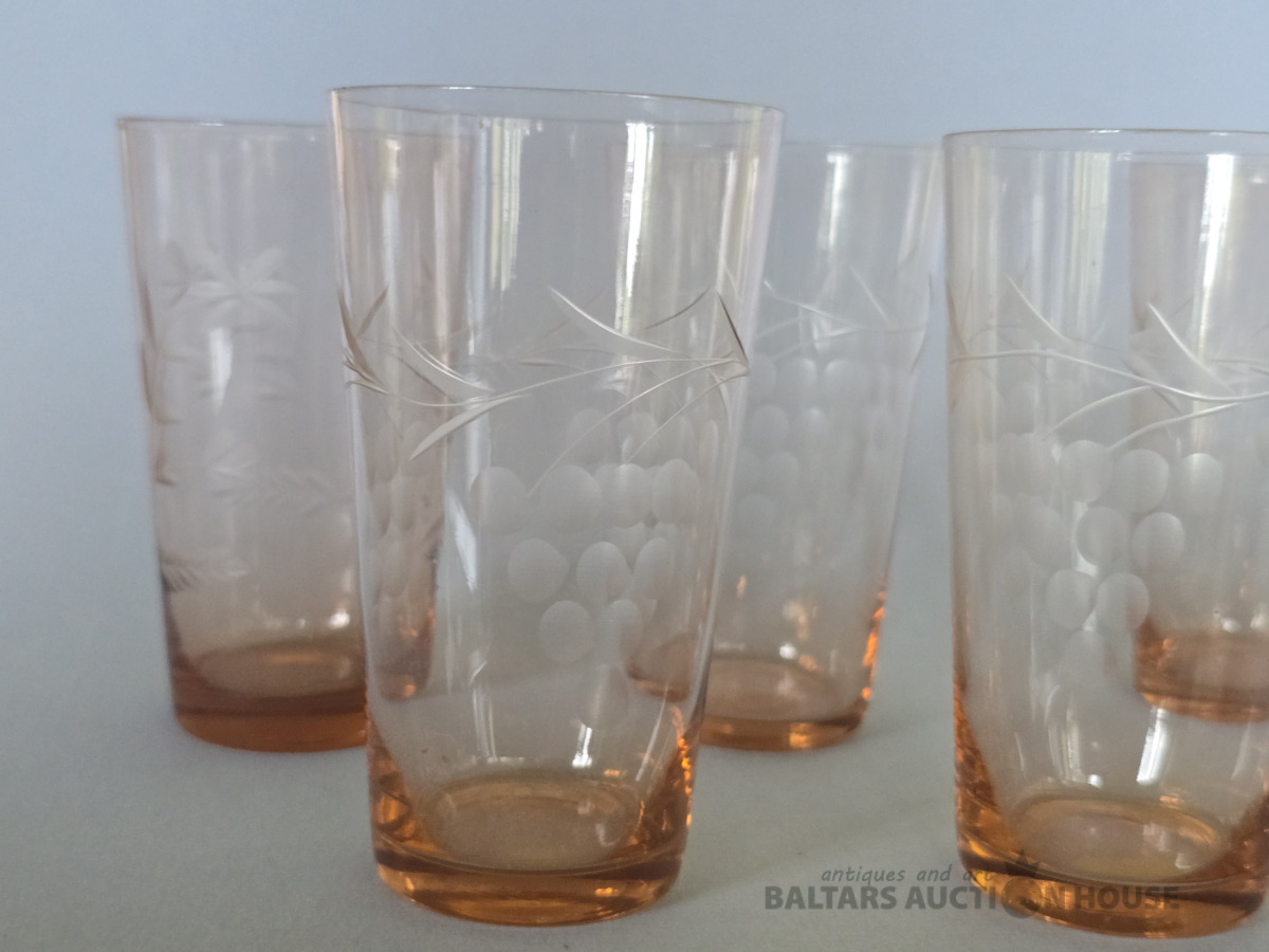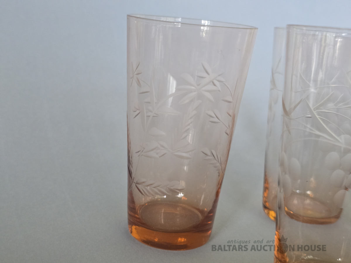 Krāsainā stikla sulas glāzes.6 gab.Iļģuciema stikla fabrika. 1 glāzei slīpējums atšķiras.