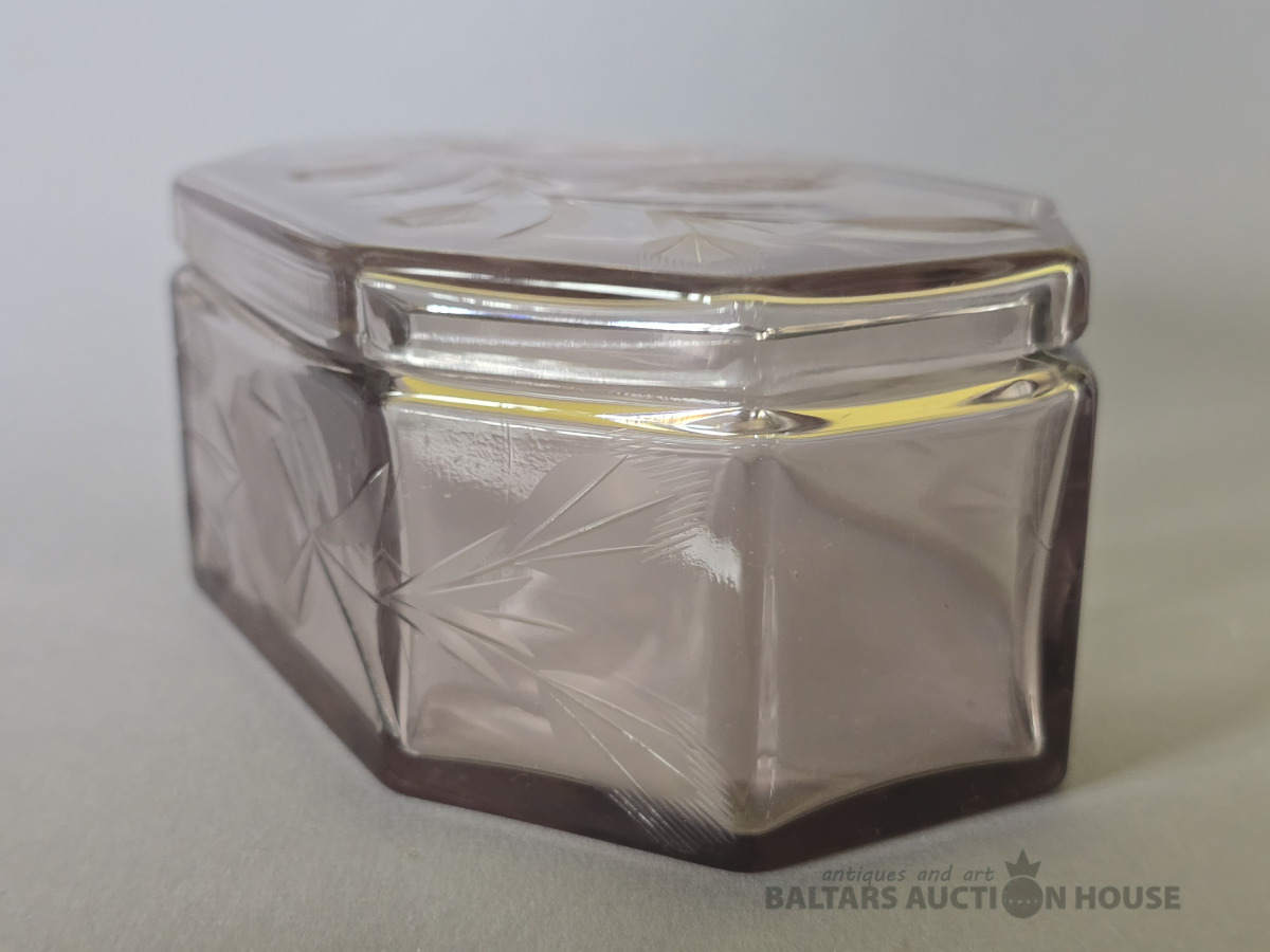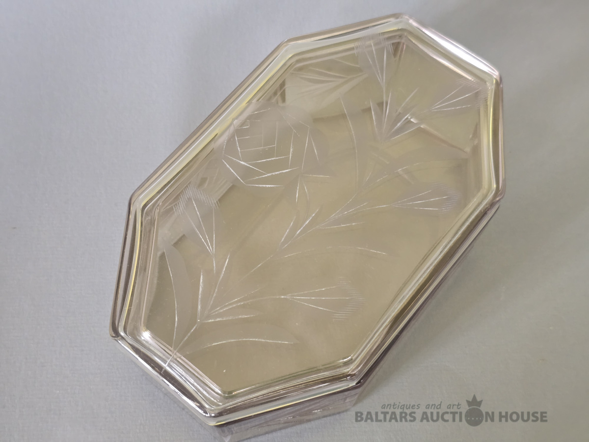 Krāsainā stikla lādīte. Iļģuciema stikla fabrika. H 7 cm Garums 16 cm Platums 10cm.